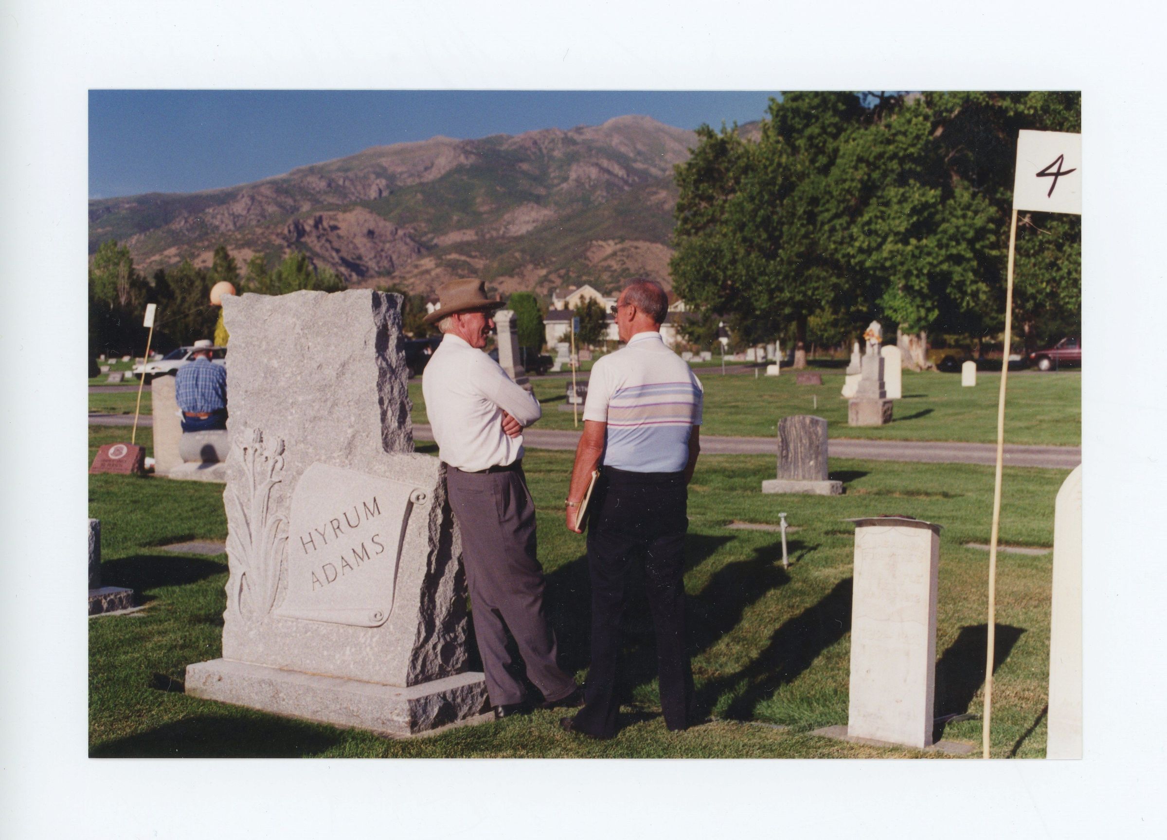 An event which was part of the Kaysville - Fruit Heights celebration of the Utah Centennial took place in 1996. The tour, hosted by the Kaysville - Fruit Heights Historic Committee, invited the public to visit historically significant gravesites in the city cemetery.Photograph Details