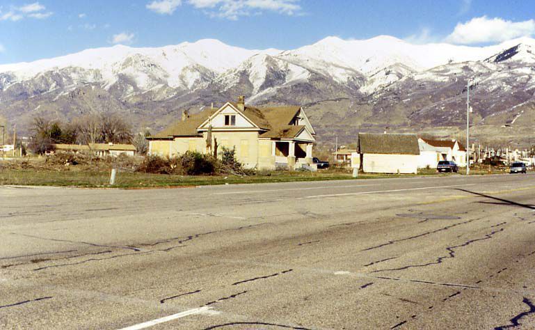 The yellow brick home is the Fred Sheffield home and the white home up the street is the H. J. Sheffield/Rulon Killian home.