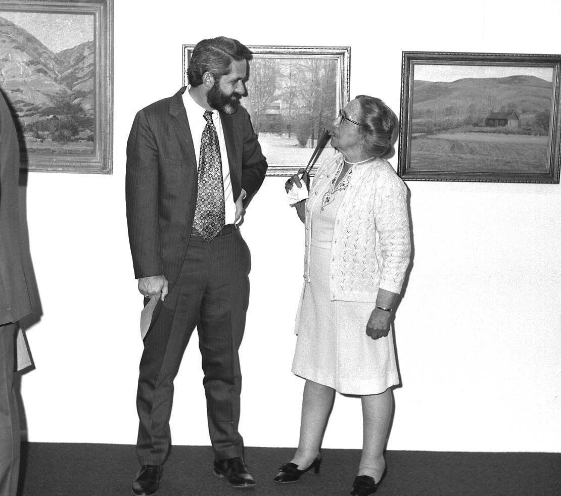 173a Zaporah Stewart in deep discussion about LaConte's paintingsDimensions