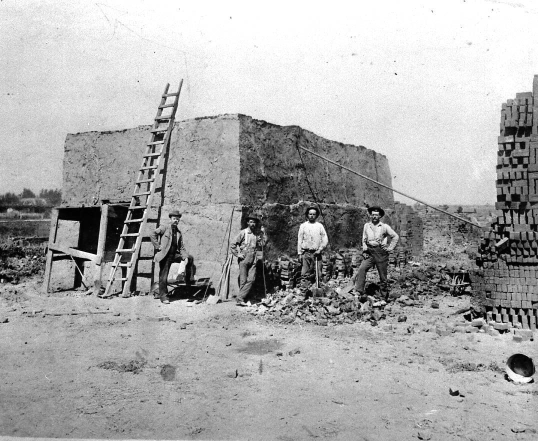 82 Kaysville Brick Yard Kiln Began 7 Apr 1890 L-R unknown, John Barker, Joe Bishop & Amos Bishop