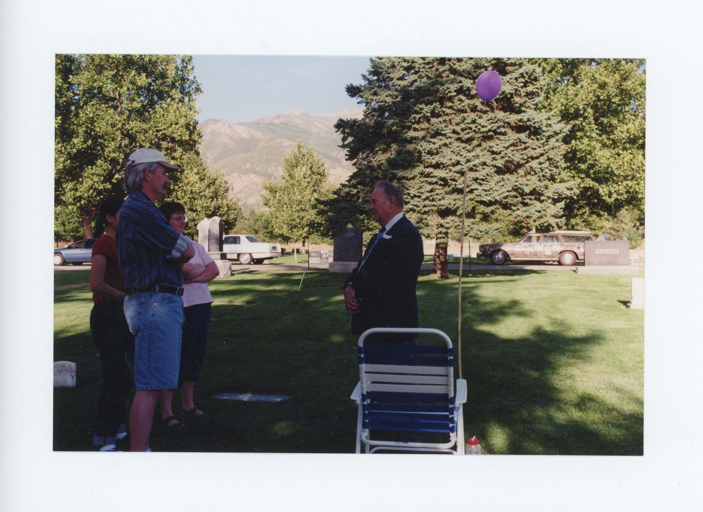 An event which was part of the Kaysville - Fruit Heights celebration of the Utah Centennial took place in 1996. The tour, hosted by the Kaysville - Fruit Heights Historic Committee, invited the public to visit historically significant gravesites in the city cemetery.Photograph Details