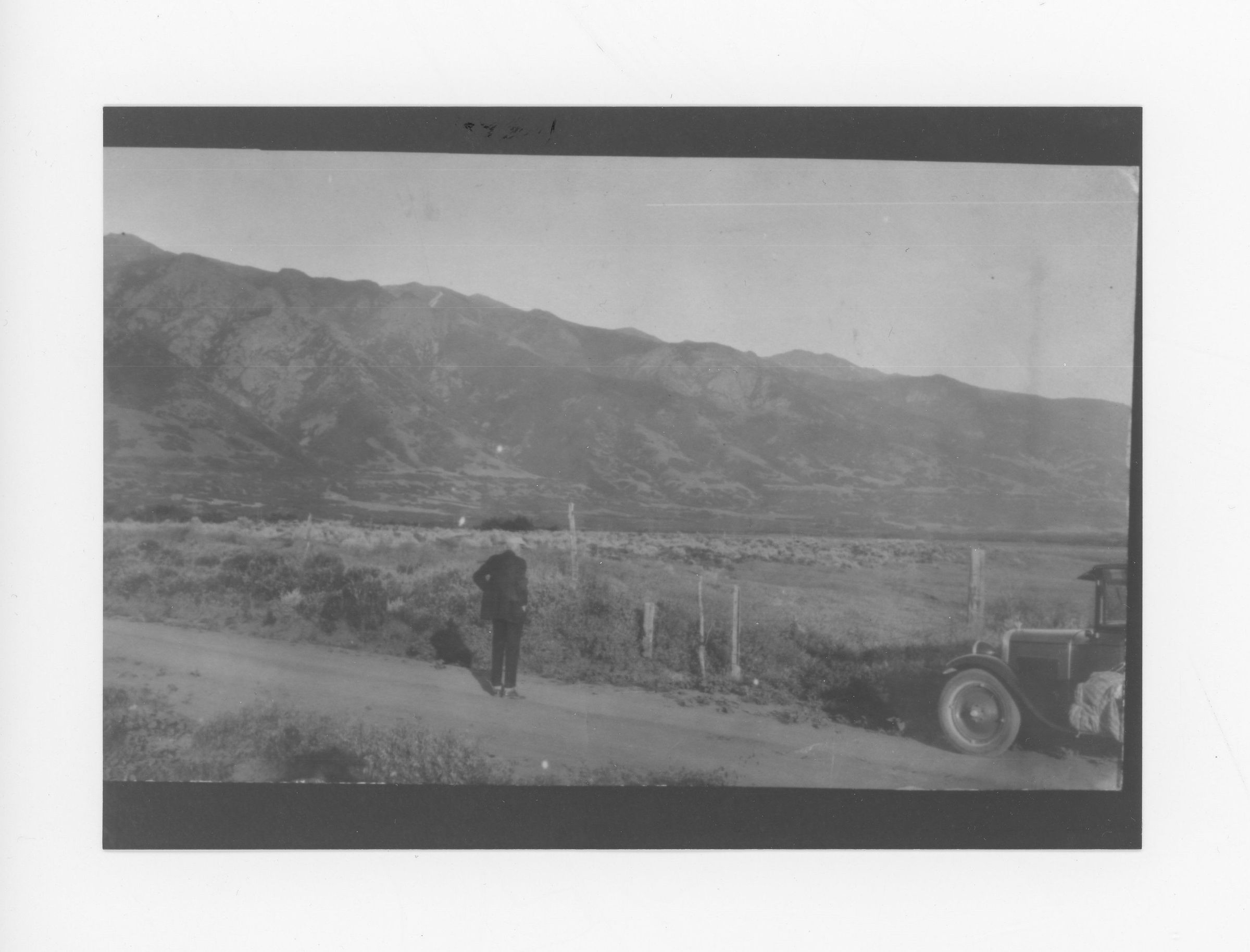 This picture was taken on Nichols road to the south of Kaysville. Dr. Gleason leased a lot of land in this area for his fruit and grape growing. The picture was taken by Lester Gleason. Today Highway 89 would cut through this picture.Collection