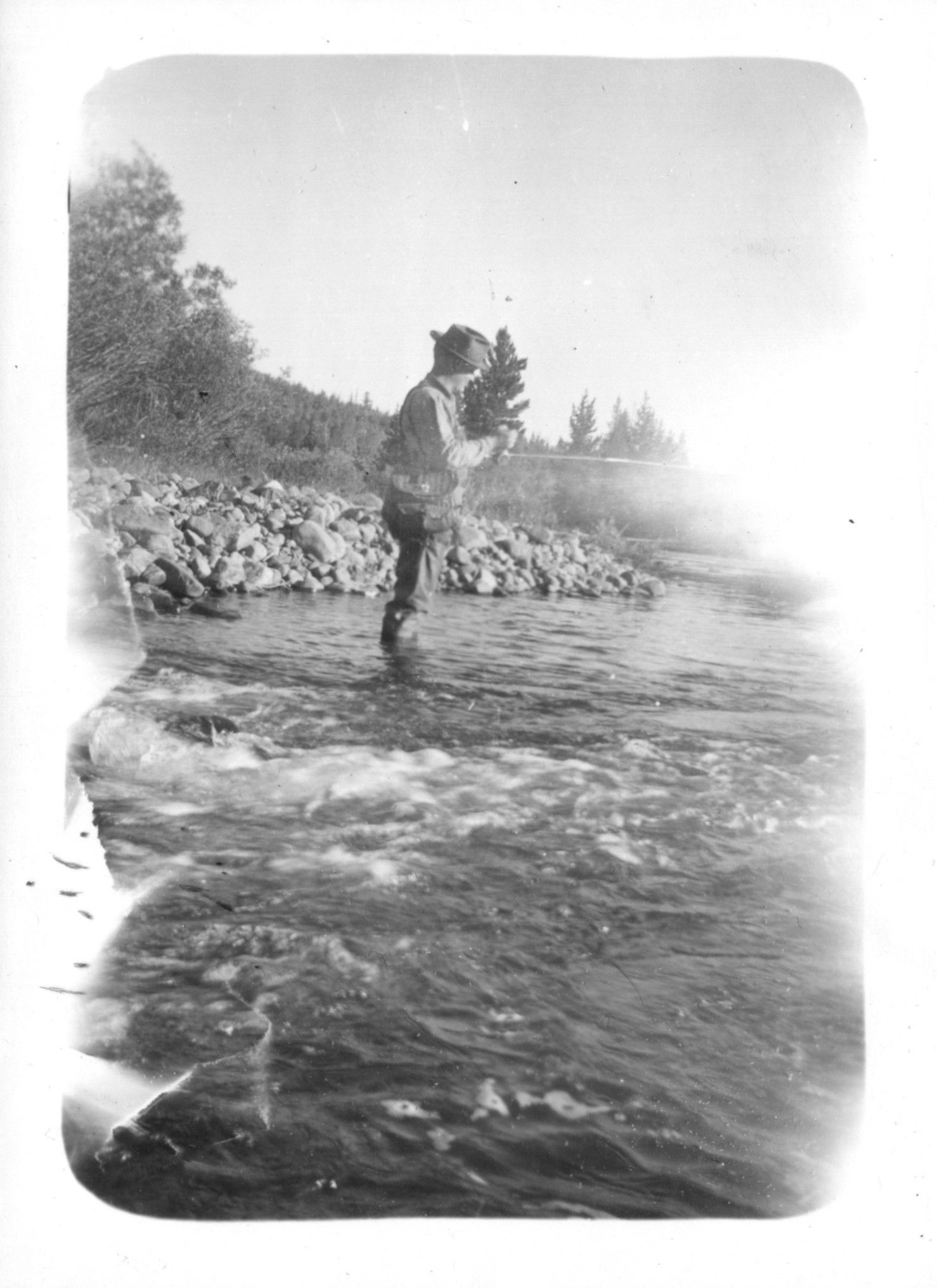 A man fishing in a mountain setting.Photograph Details