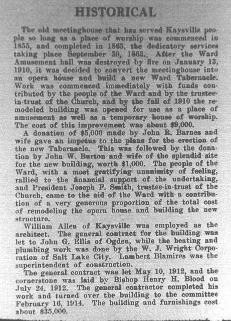 Kaysville L.D.S. Tabernacle and Kaysville Opera House located across each other on 100 West Street.Photograph Details