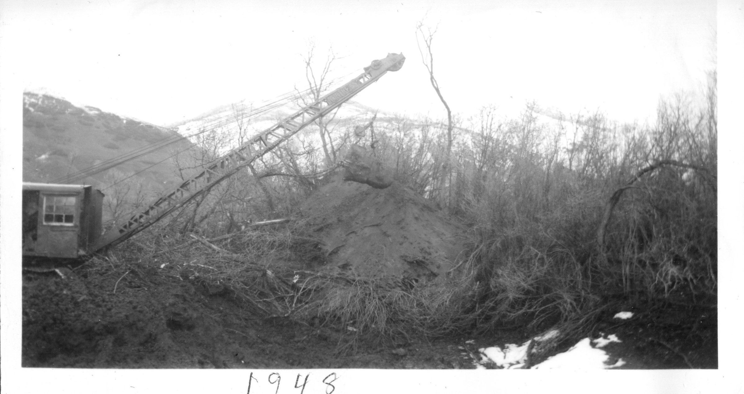 Excavation tractor digging irrigation reservoir on Butcher property in east Kaysville/Fruit Heights.Photograph Details