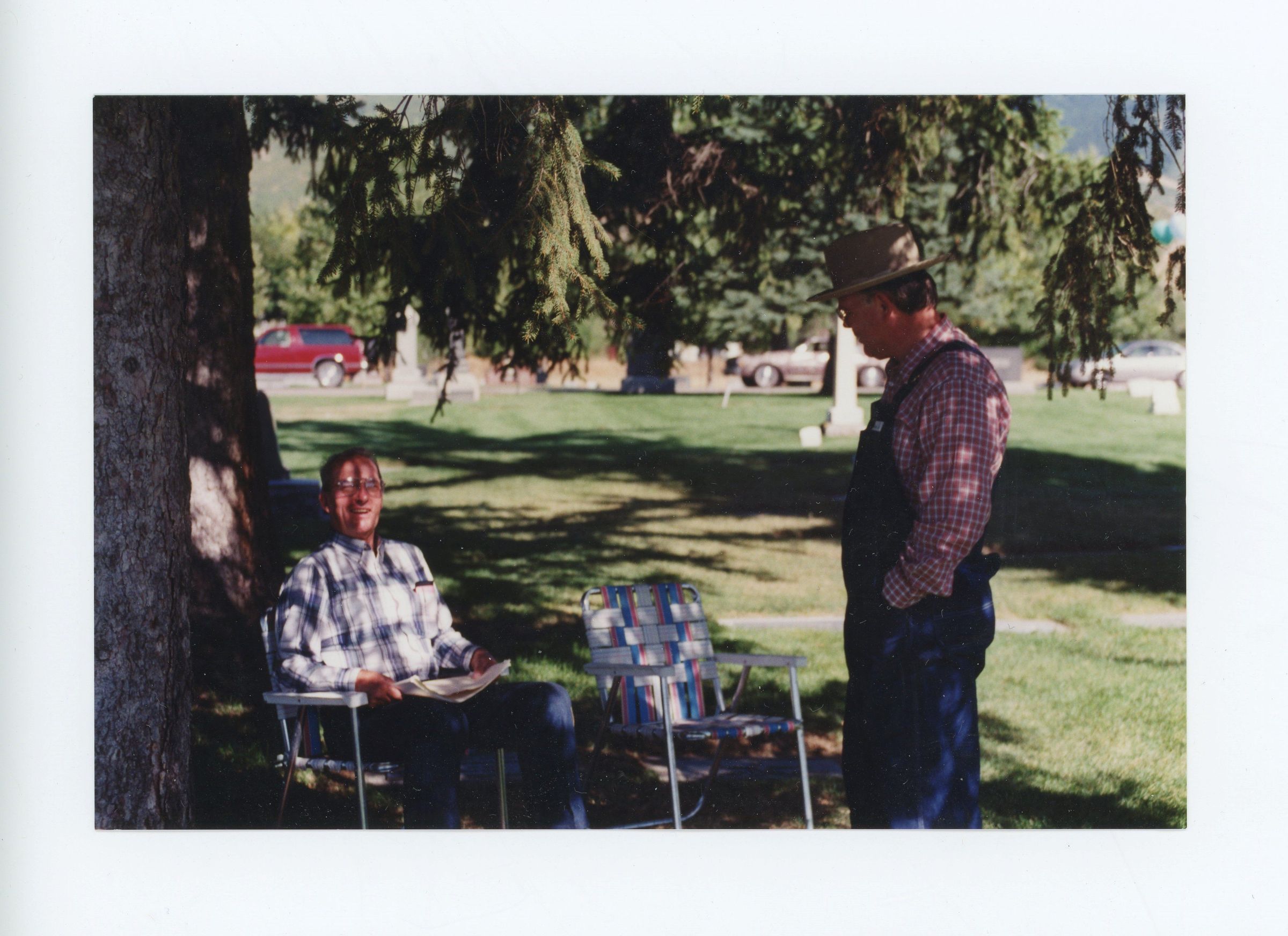 An event which was part of the Kaysville - Fruit Heights celebration of the Utah Centennial took place in 1996. The tour, hosted by the Kaysville - Fruit Heights Historic Committee, invited the public to visit historically significant gravesites in the city cemetery.Photograph Details