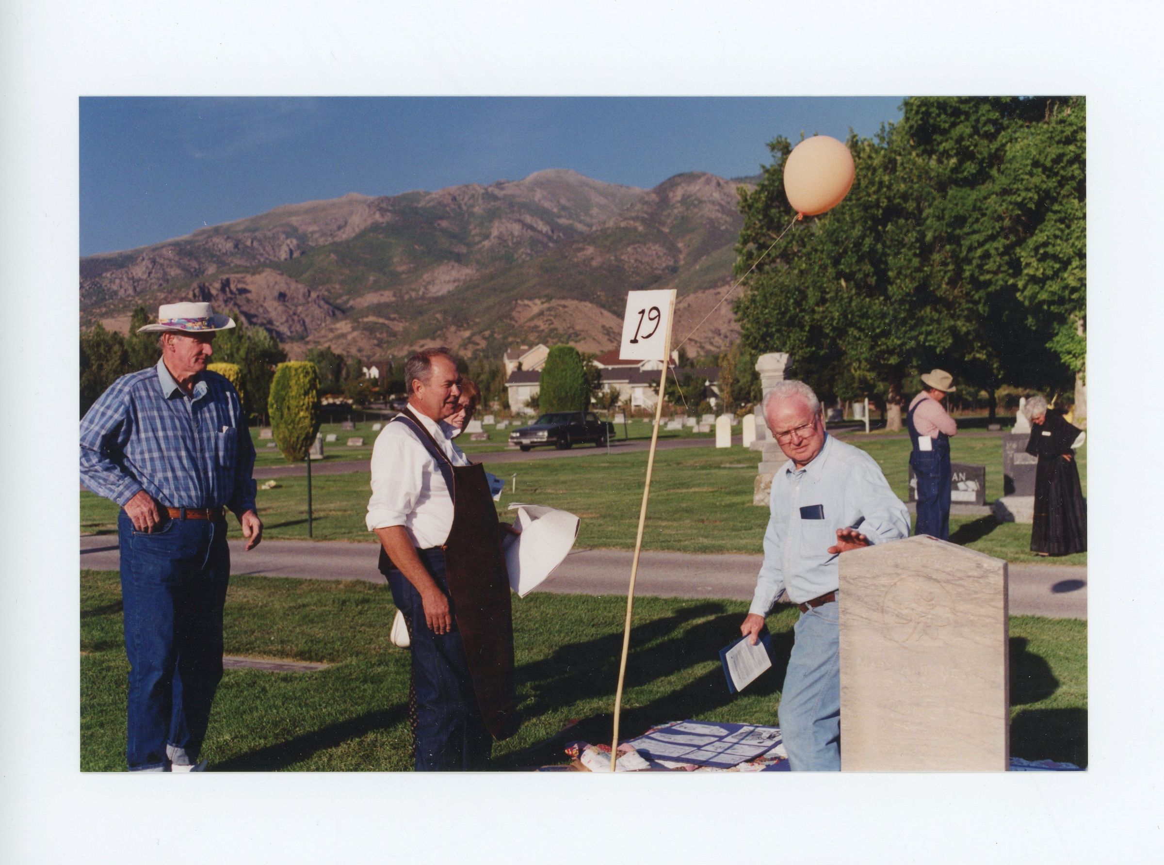 An event which was part of the Kaysville - Fruit Heights celebration of the Utah Centennial took place in 1996. The tour, hosted by the Kaysville - Fruit Heights Historic Committee, invited the public to visit historically significant gravesites in the city cemetery.Photograph Details