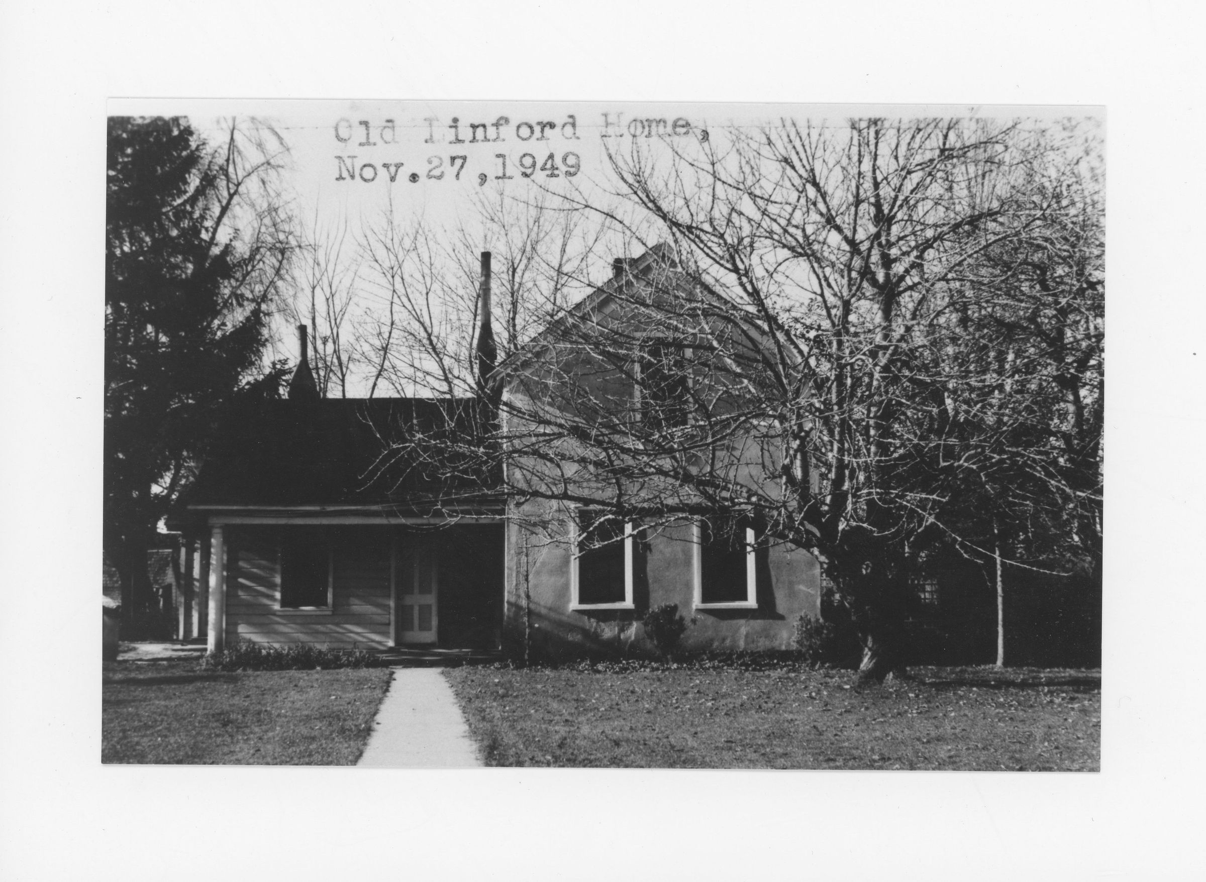 This was the James and Zilla Crocket Linford home on Main Street south of 100 South, west side of Main Street. In 1949, Cliff and Ruth Linford were probably living in this home.Collection