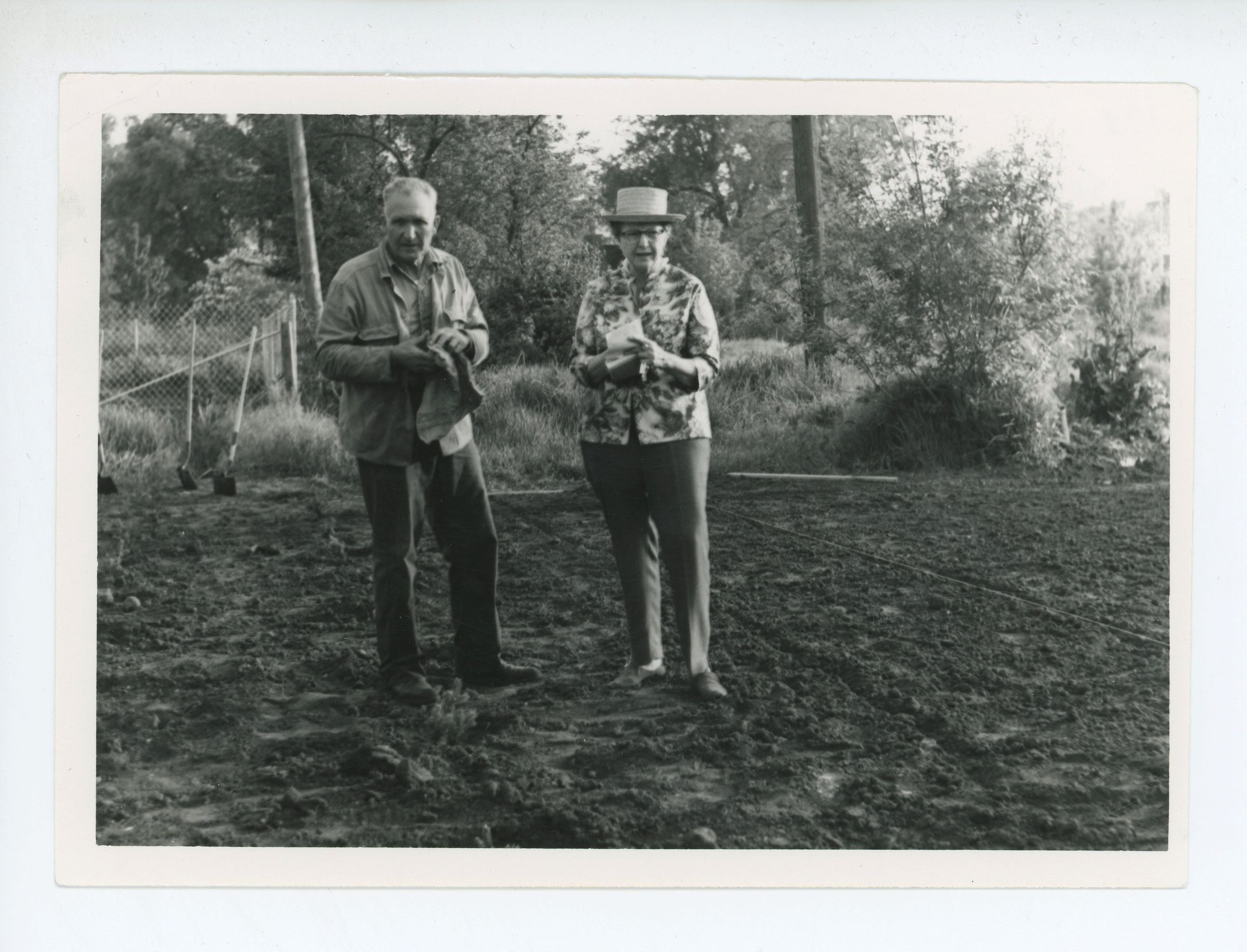 Sam Bloxham and Iola Smith standing near a Blue Spruce tree planting on Main Street, Kaysville.Photograph Details