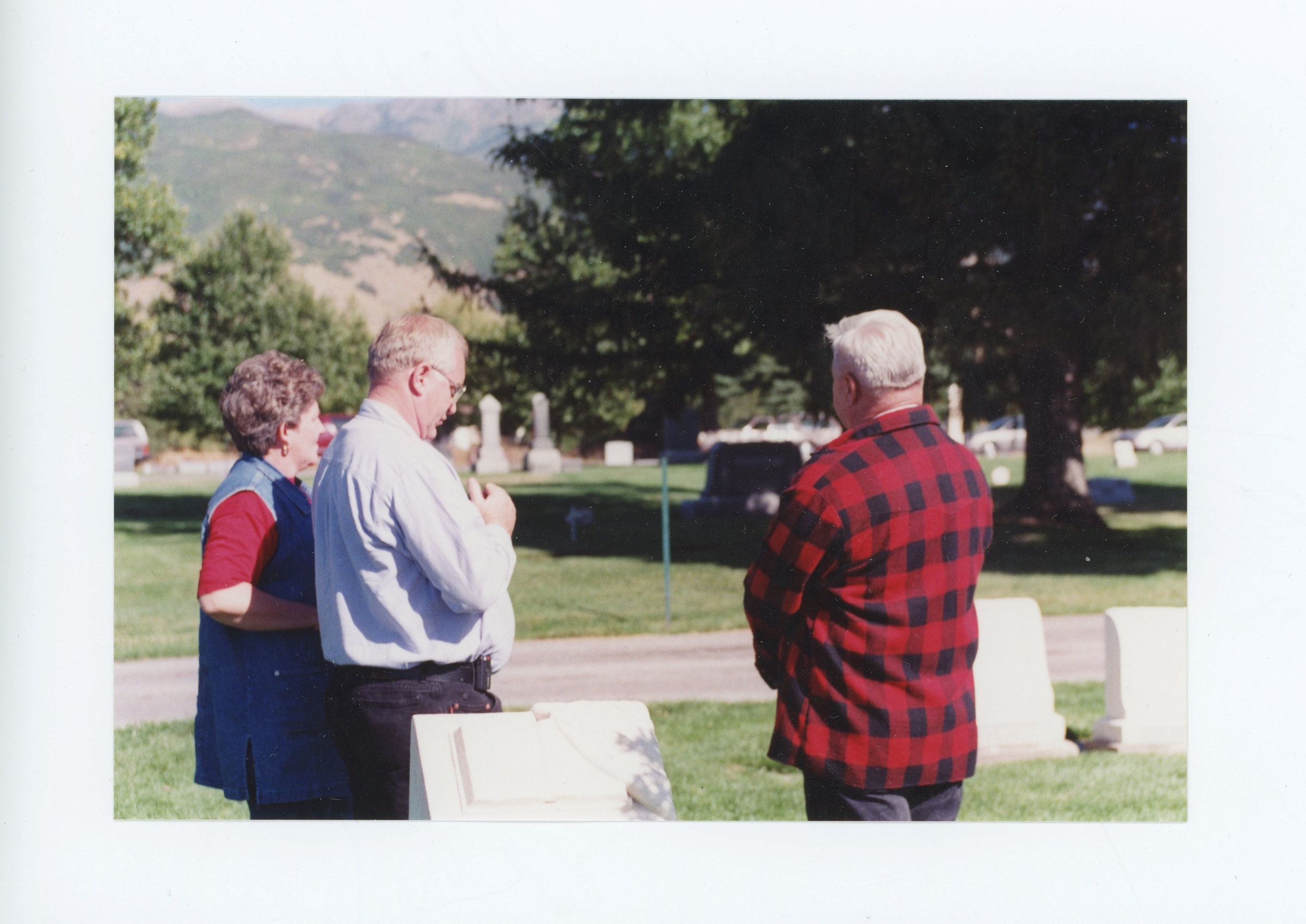 An event which was part of the Kaysville - Fruit Heights celebration of the Utah Centennial took place in 1996. The tour, hosted by the Kaysville - Fruit Heights Historic Committee, invited the public to visit historically significant gravesites in the city cemetery.Photograph Details