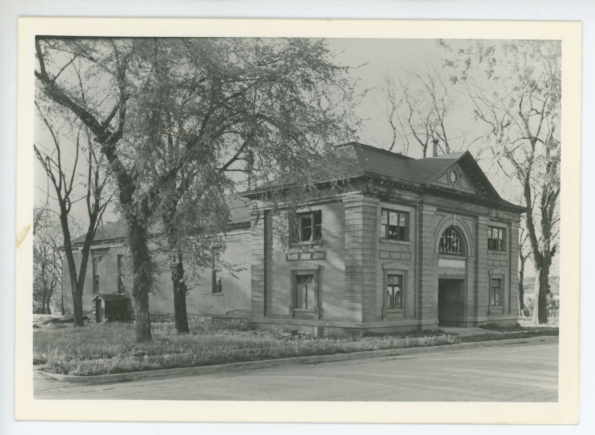 The printing of this picture has been flipped. The outdoor basement entrance to the building was on its north side. This view would make you thing you were looking at the building's south side. The is not correct.