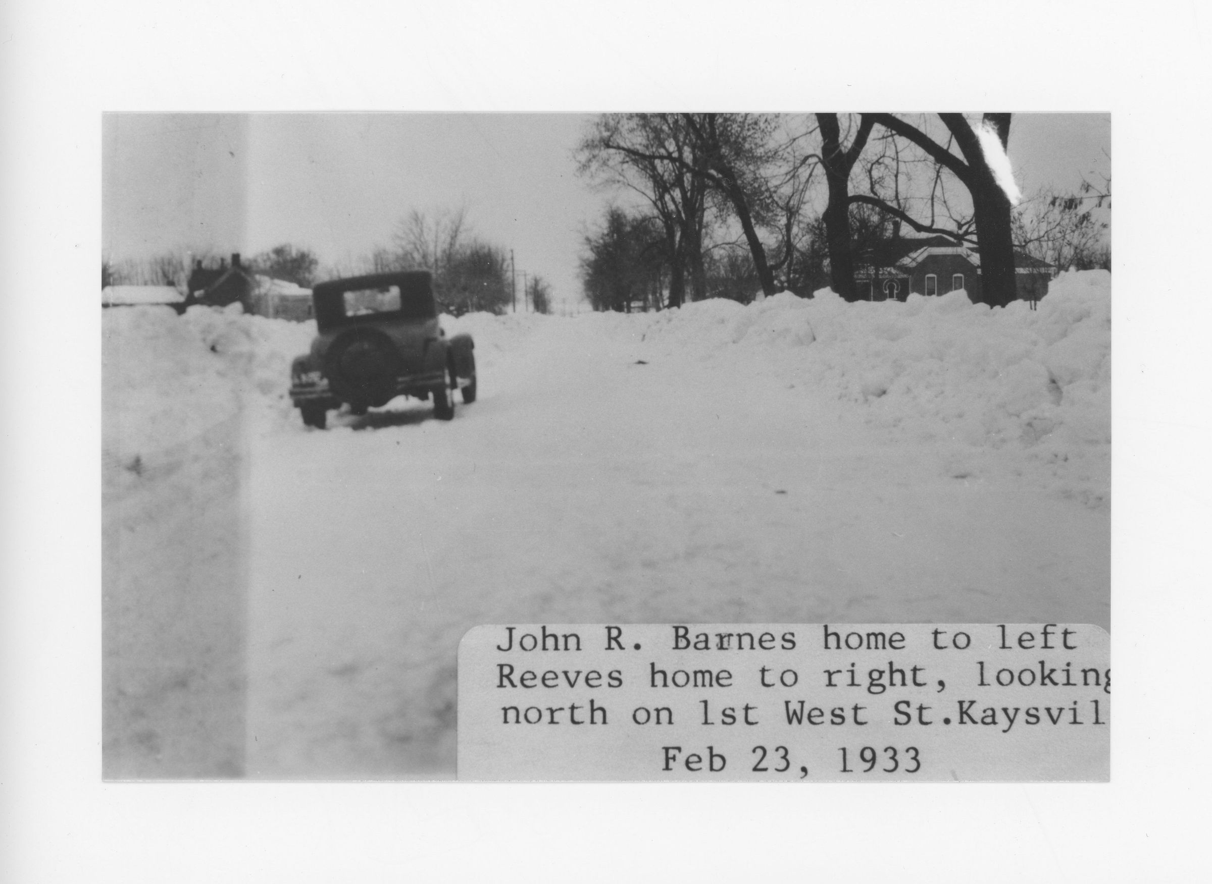 This would be looking north along 100 West between Center Street and 100 South. The John R. Barnes home to the left, Reeves home to the right.Collection