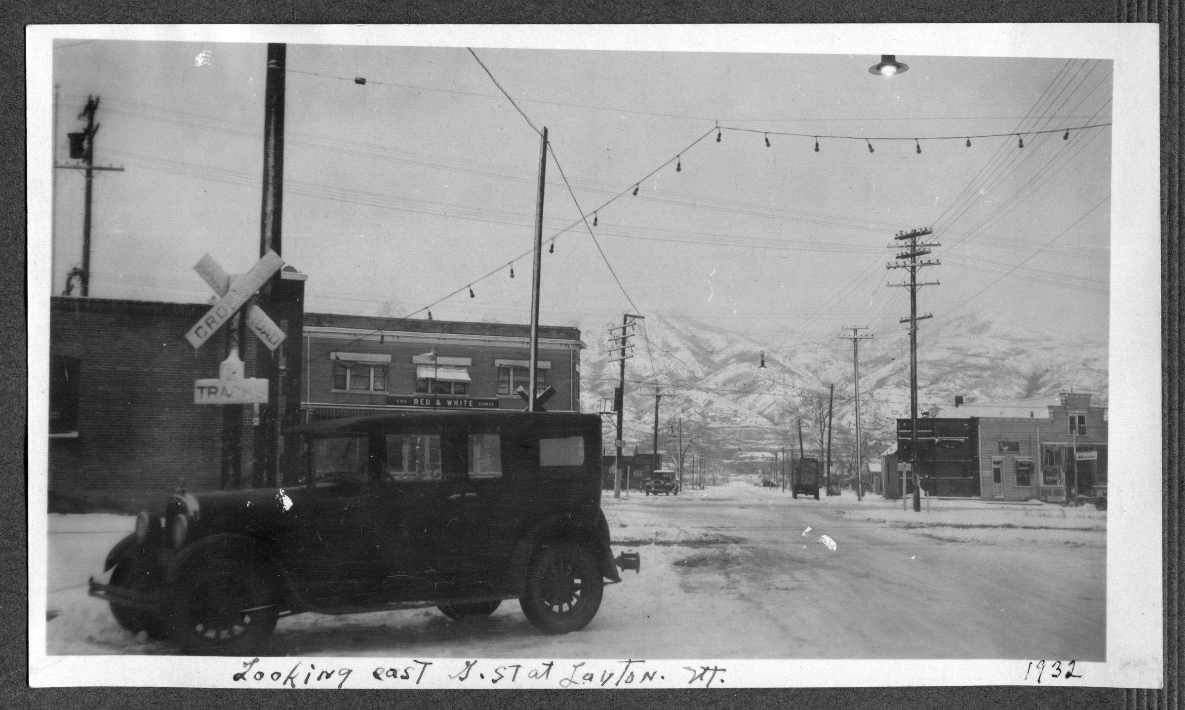 Car at the corner of Gentile and Main Street, Layton, Utah. Viewpoint of photograph is looking east.Photograph Details
