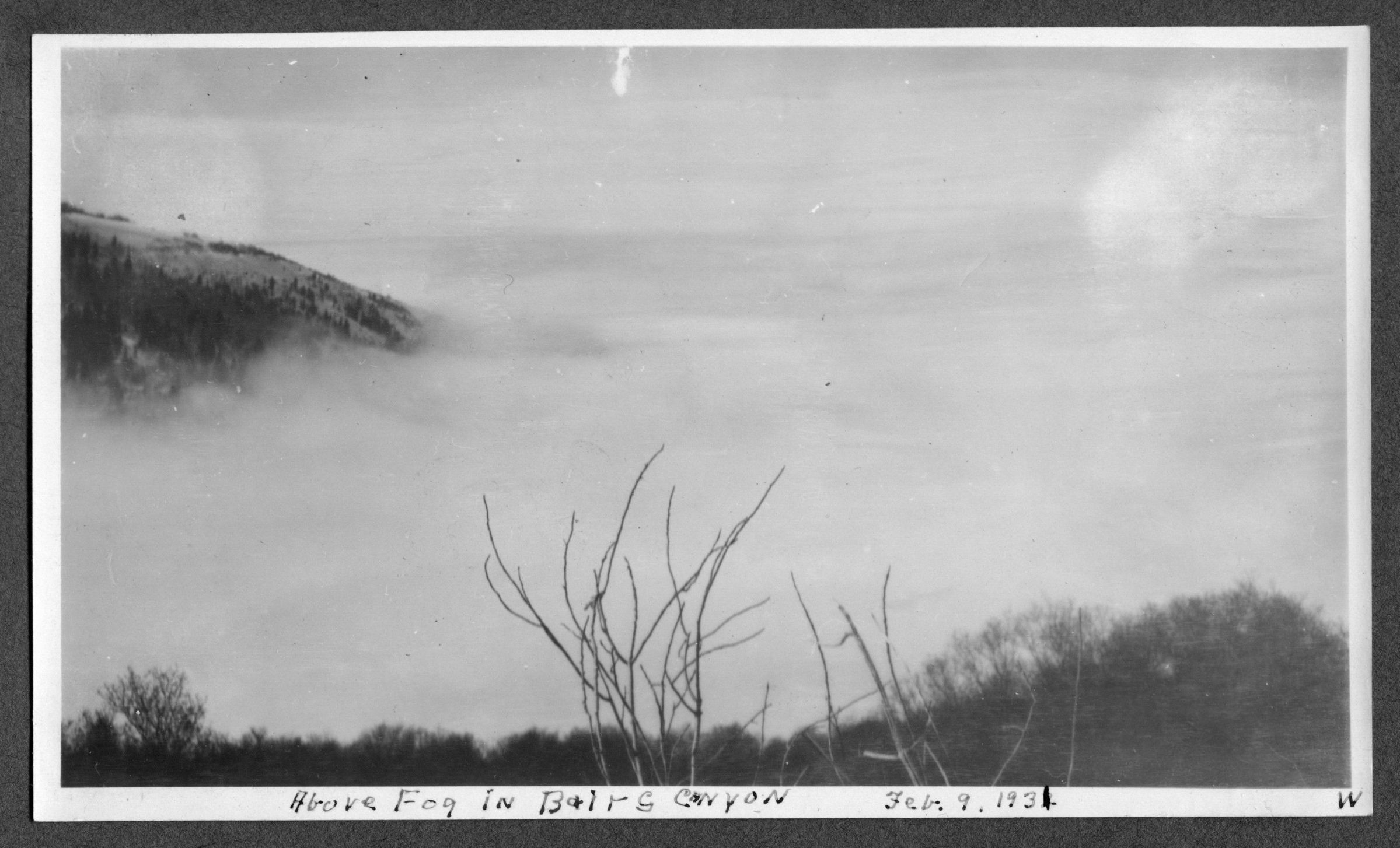 Above Fog in Bairs Canyon Feb. 9. 1931 W