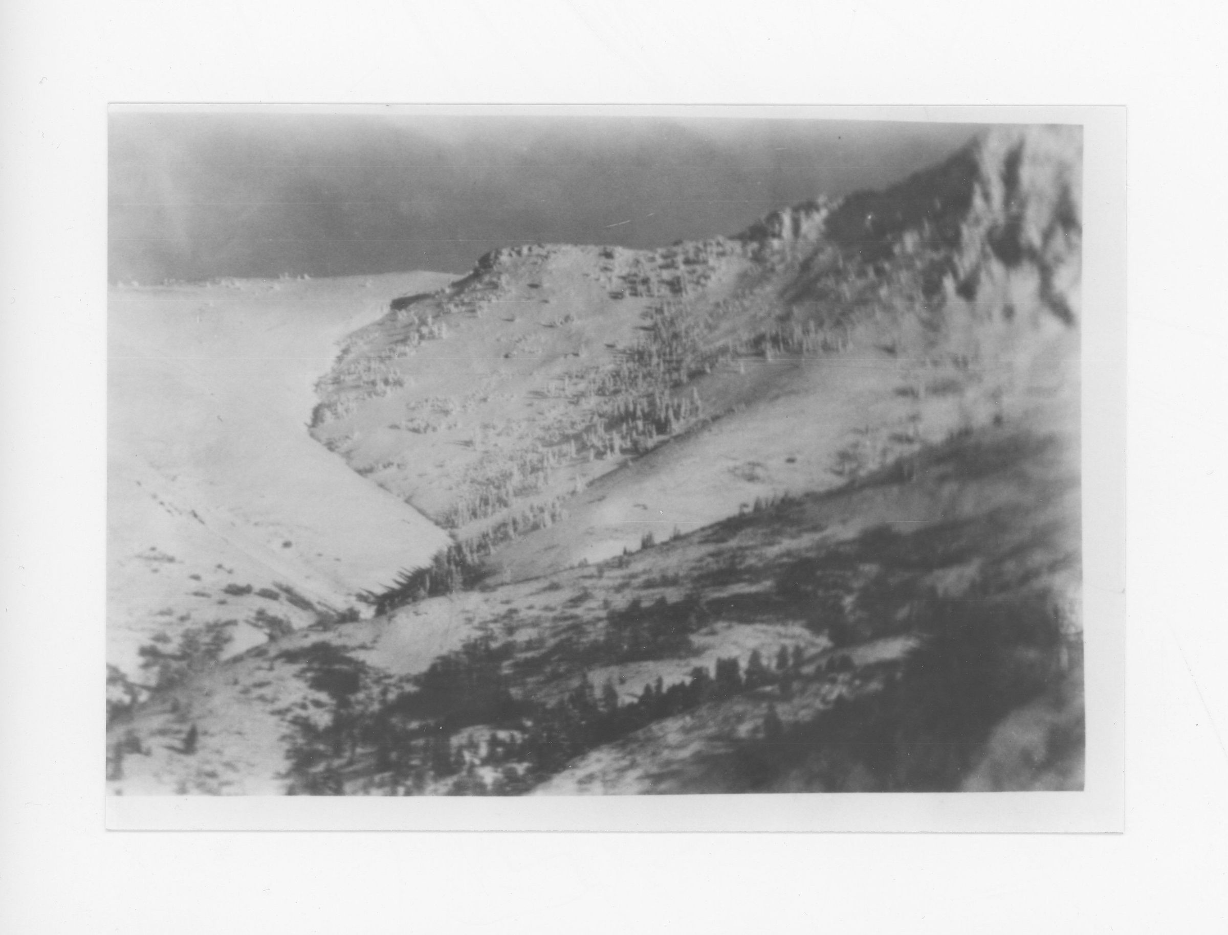 Snow-covered slopes of the upper basin above Bair Canyon.