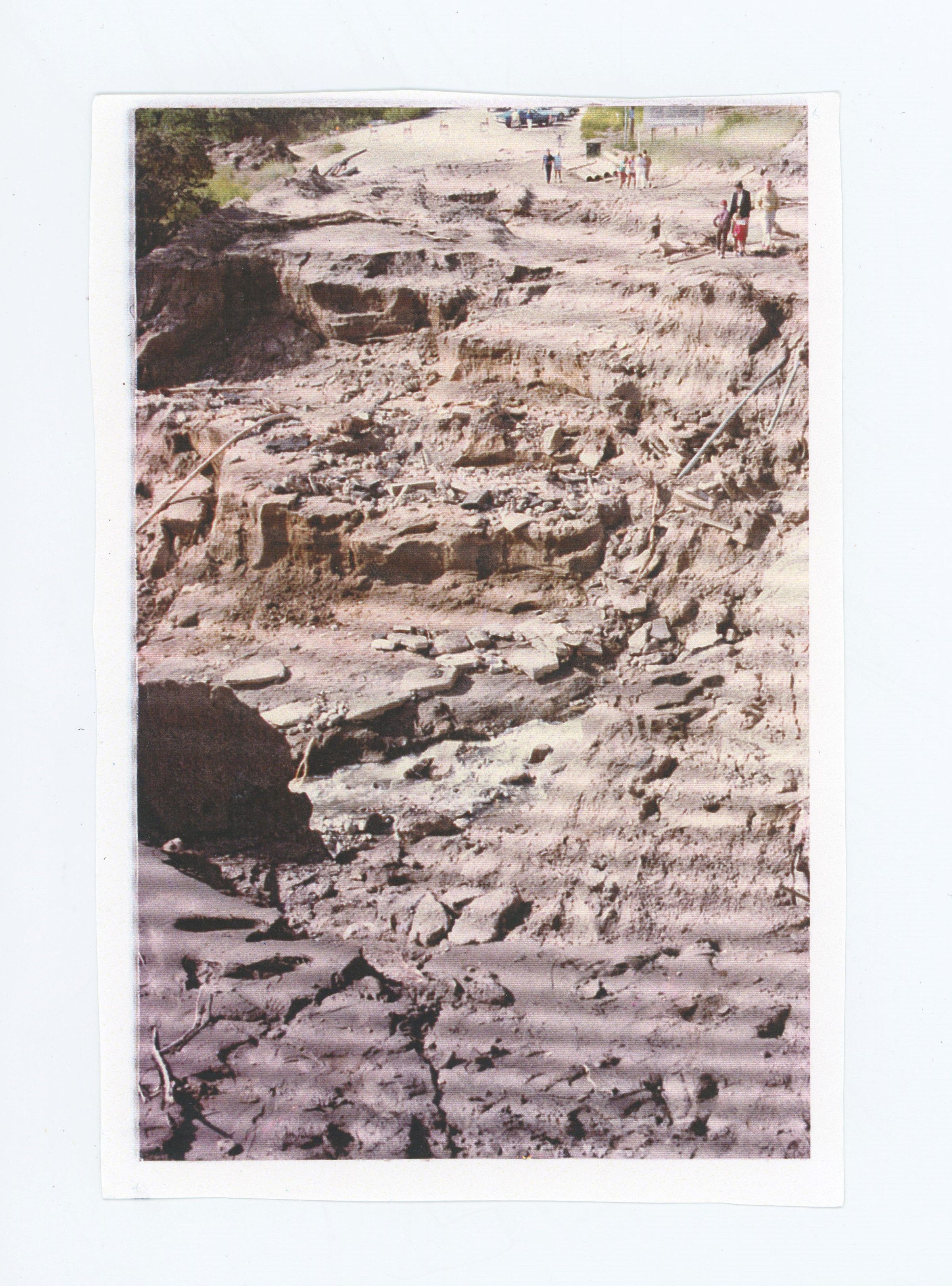 People standing on the edge of mud slide in Bountiful, Utah, the result of flash flooding.Photograph Details