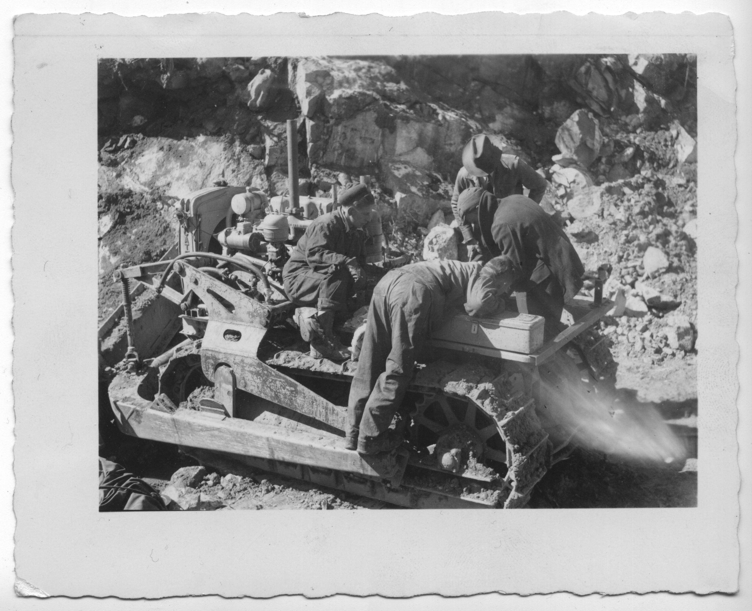CCC men repairing construction tractor in Uinta Mountains.Photograph Details