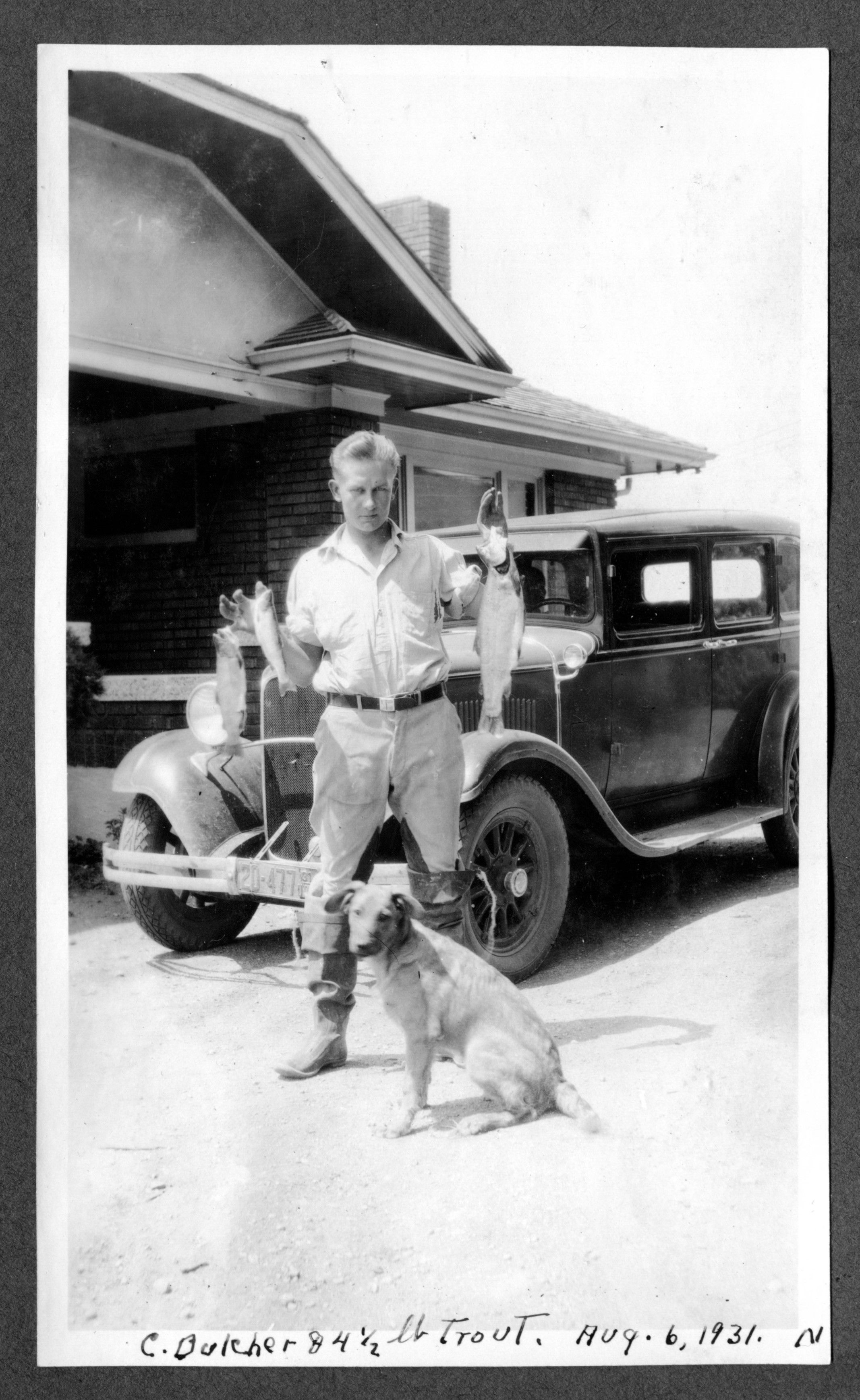 C. Butcher & 4 1/2 lb Trout. Aug. 6, 1931. N