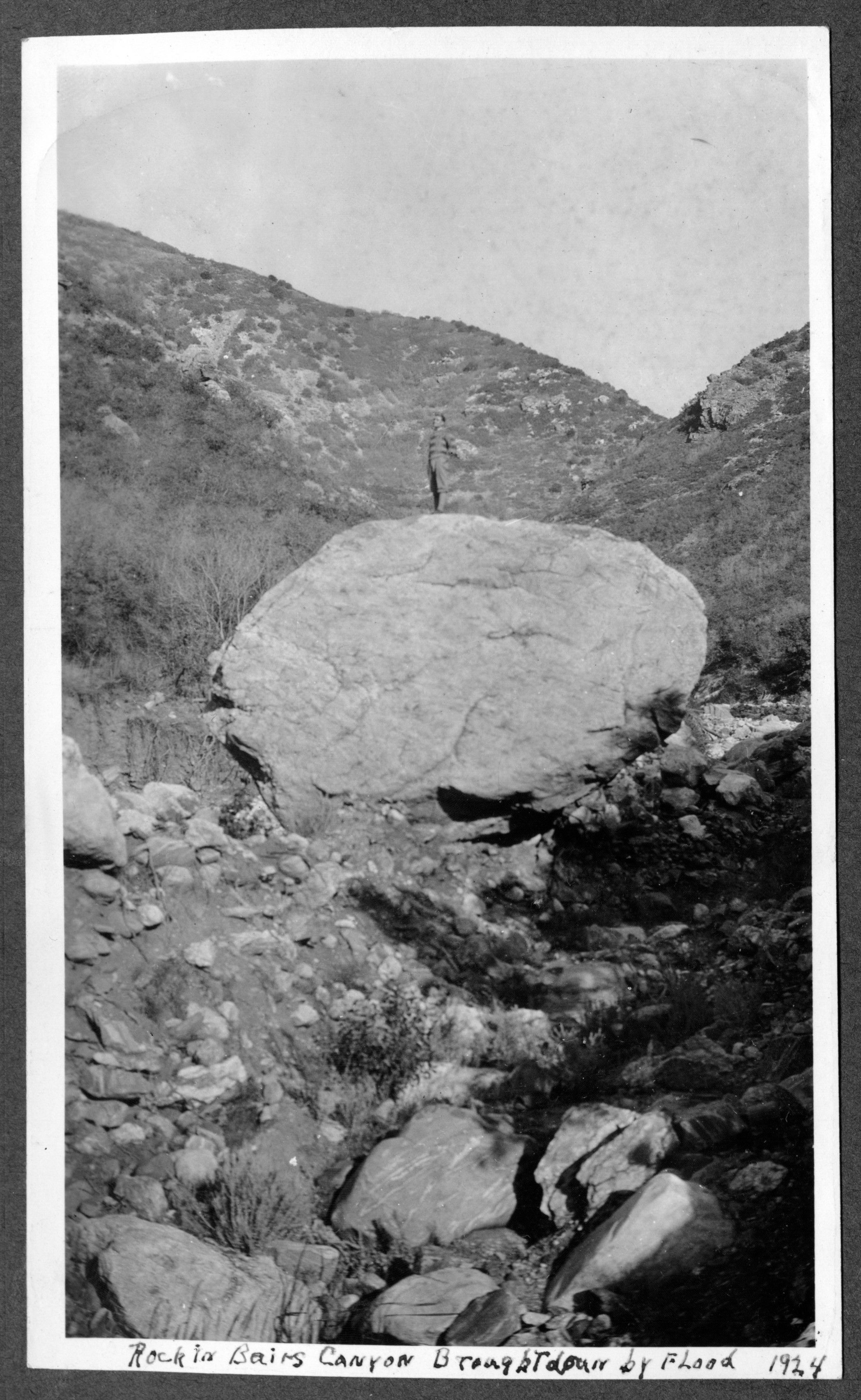 The rock was brought down Bair Canyon by flooding and mudslides of 1924.Collection