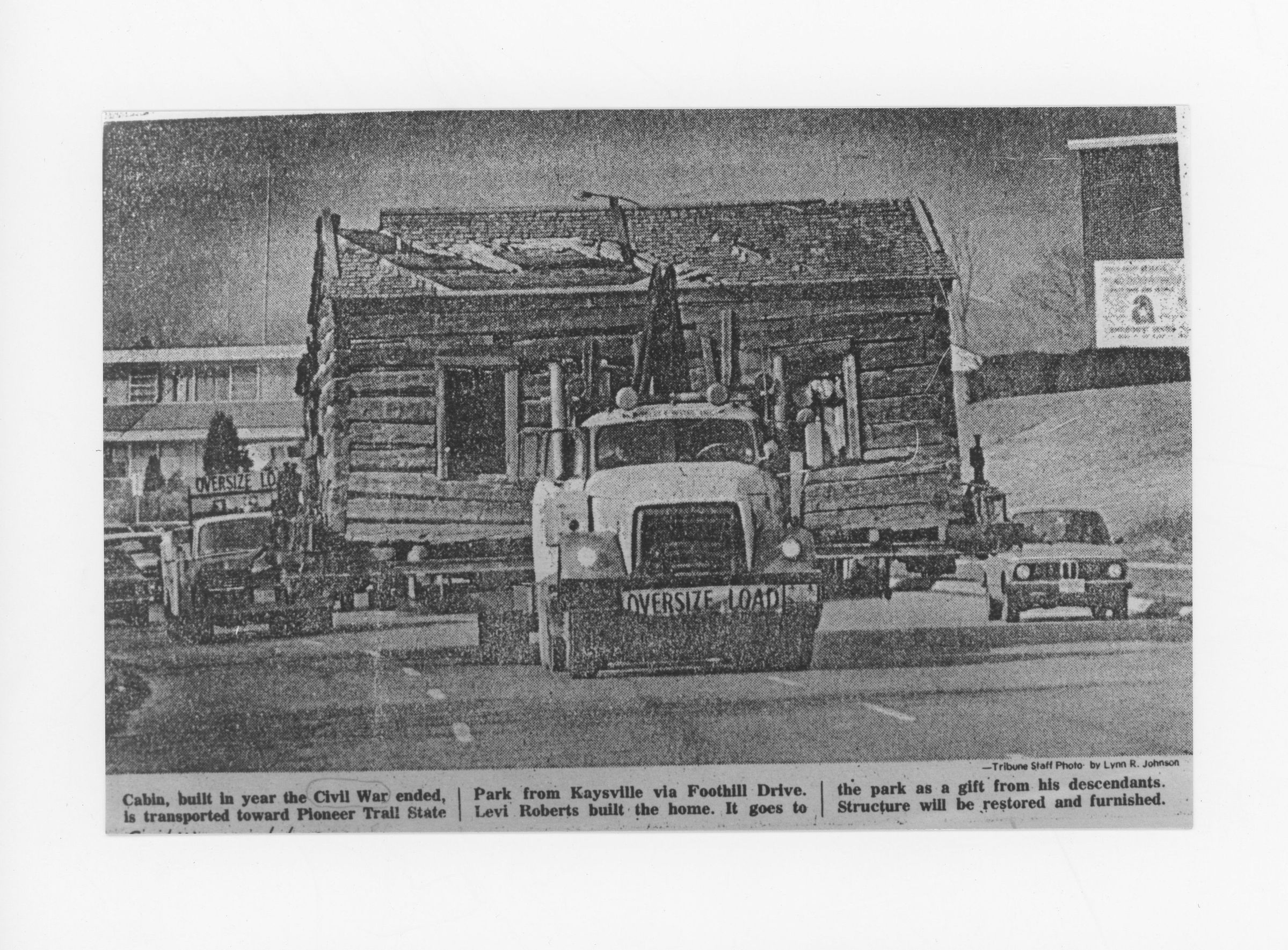 Historic Roberts home being transported toward Pioneer Trail State Park.Photograph Details