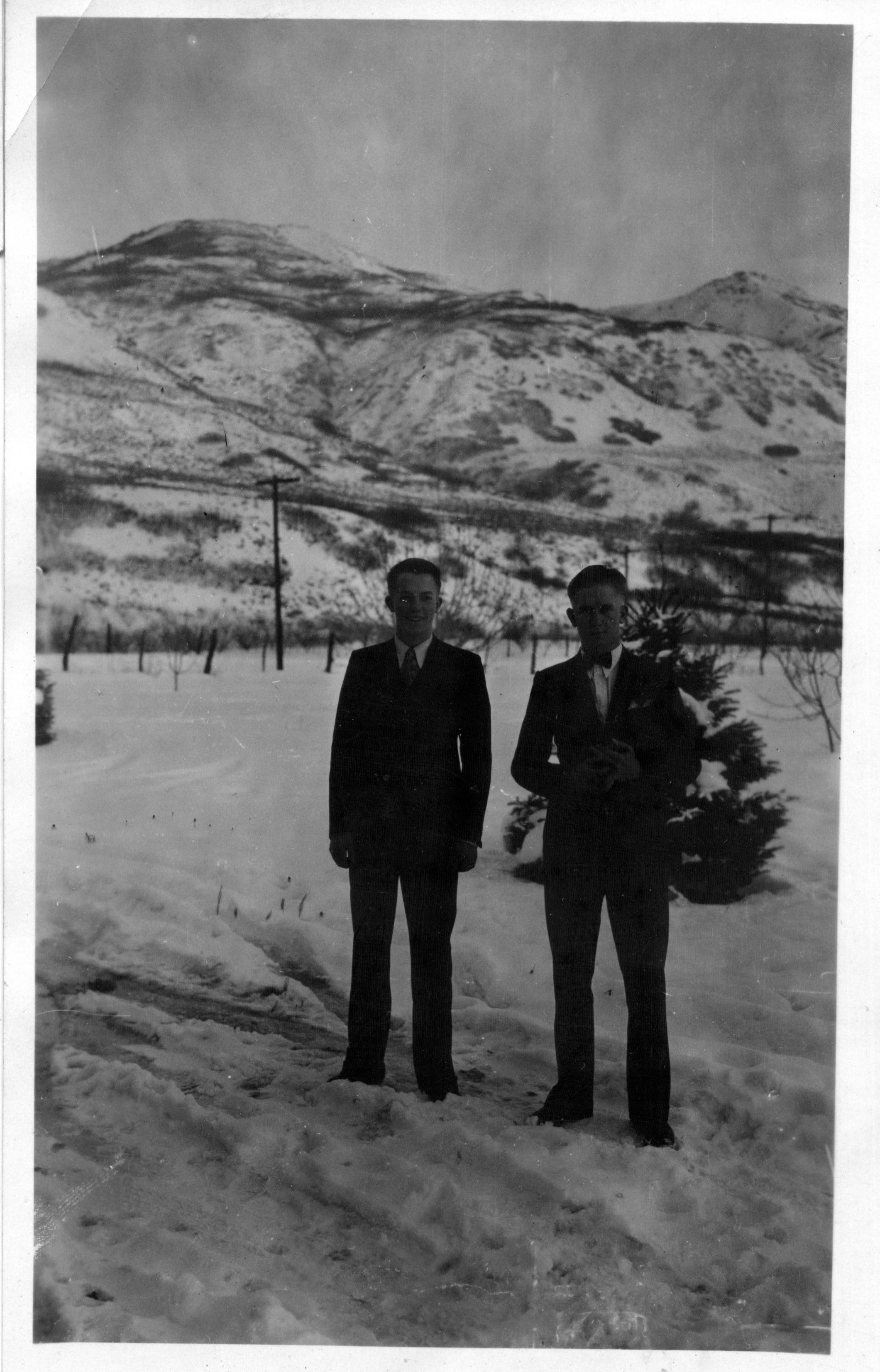 L to R: Vern Butcher and his brother Carl Butcher outside their home on Mountain Road in east Kaysville/Fruit Heights.Photograph Details