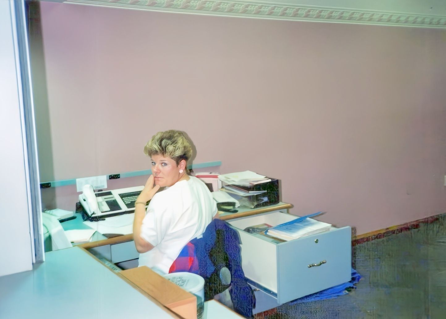 Vicki Leo, accounts receivable clerk for Kaysville City, seated at desk within city offices.Photograph Details