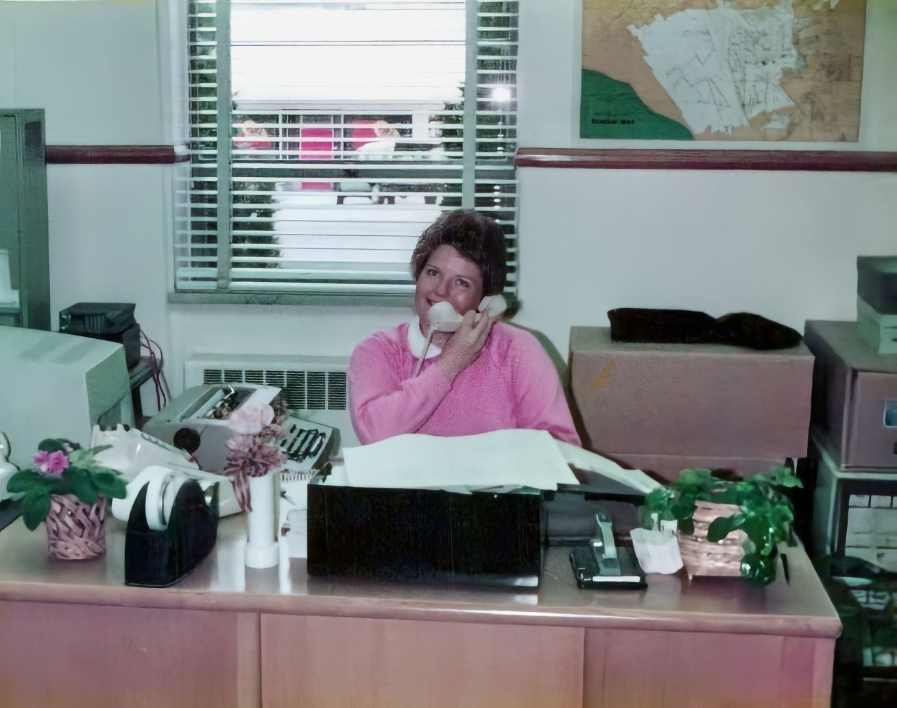 Vicki Leo, accounts receivable clerk for Kaysville City, seated at desk within city offices.Photograph Details