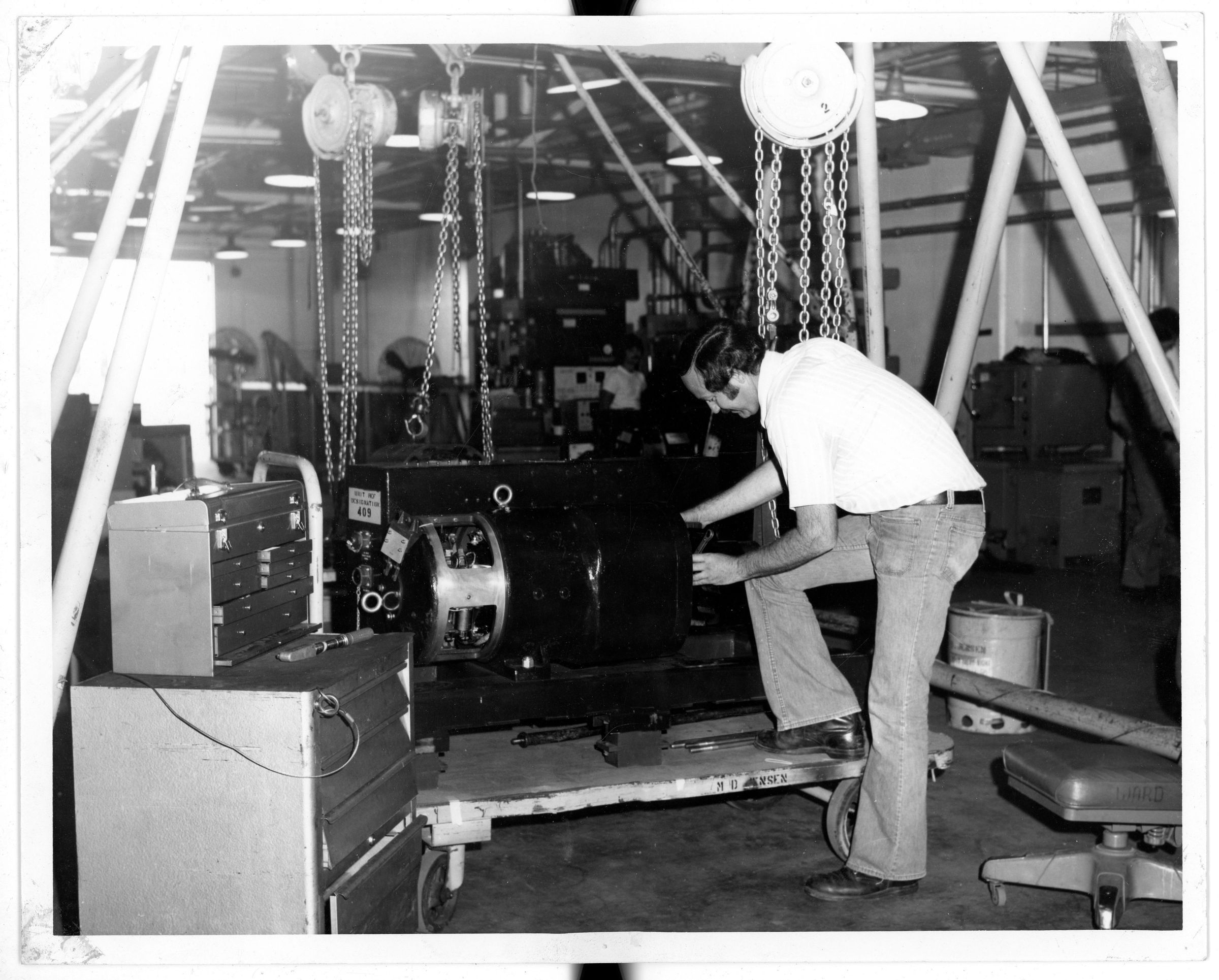 Gregory Ward working in mechanic repair shop for jet engines at Hill Air Force Base in Davis County.