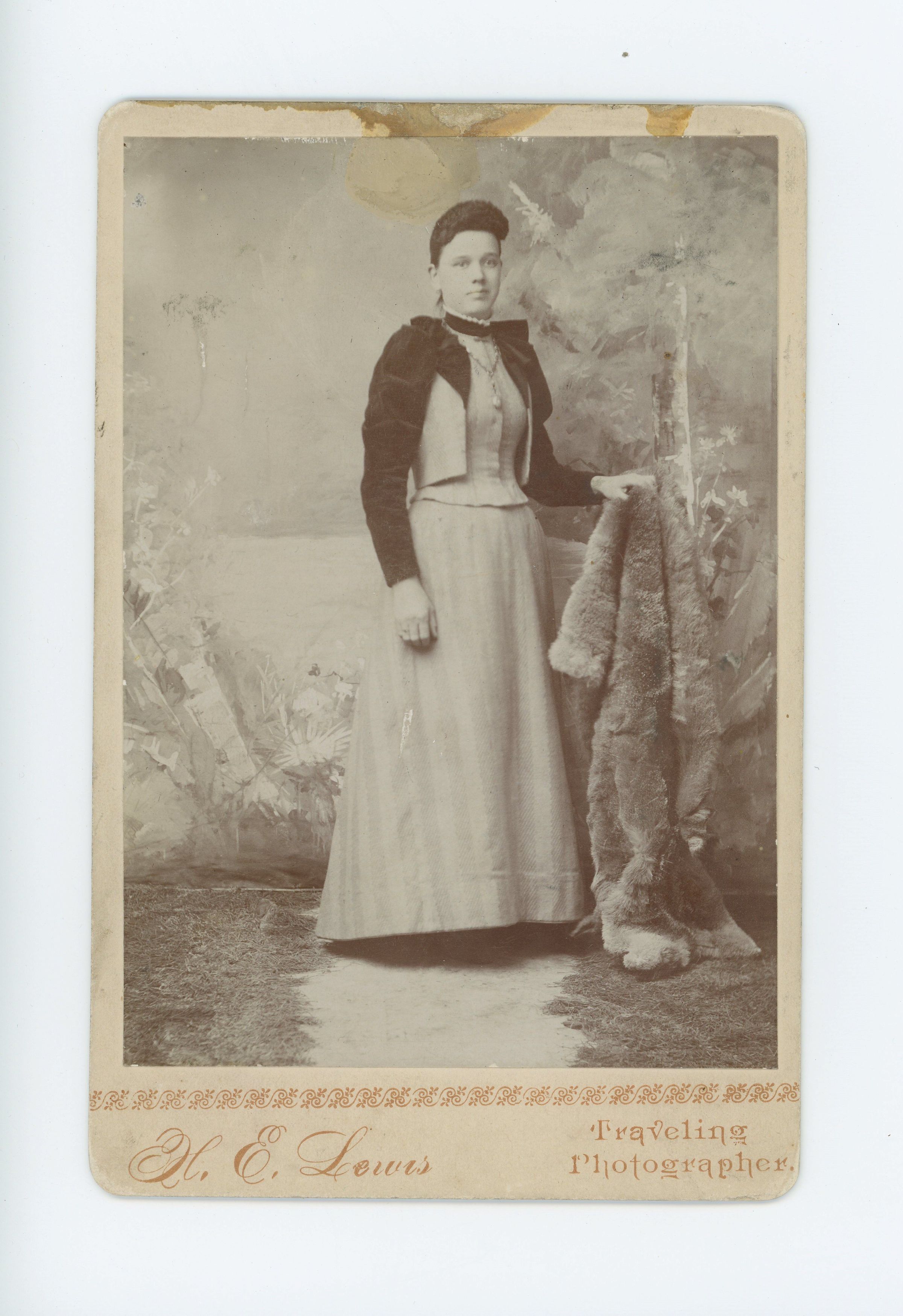 Lucy Bacon emigrated with her family from Chesterfield, Derbyshire, England to Kaysville, Utah, shortly after the transcontinental railroad arrived in Utah. They joined an older sister, Rose Bacon Barker and her husband. The photograph was taken by Kaysville photographer H. E. Lewis.Collection