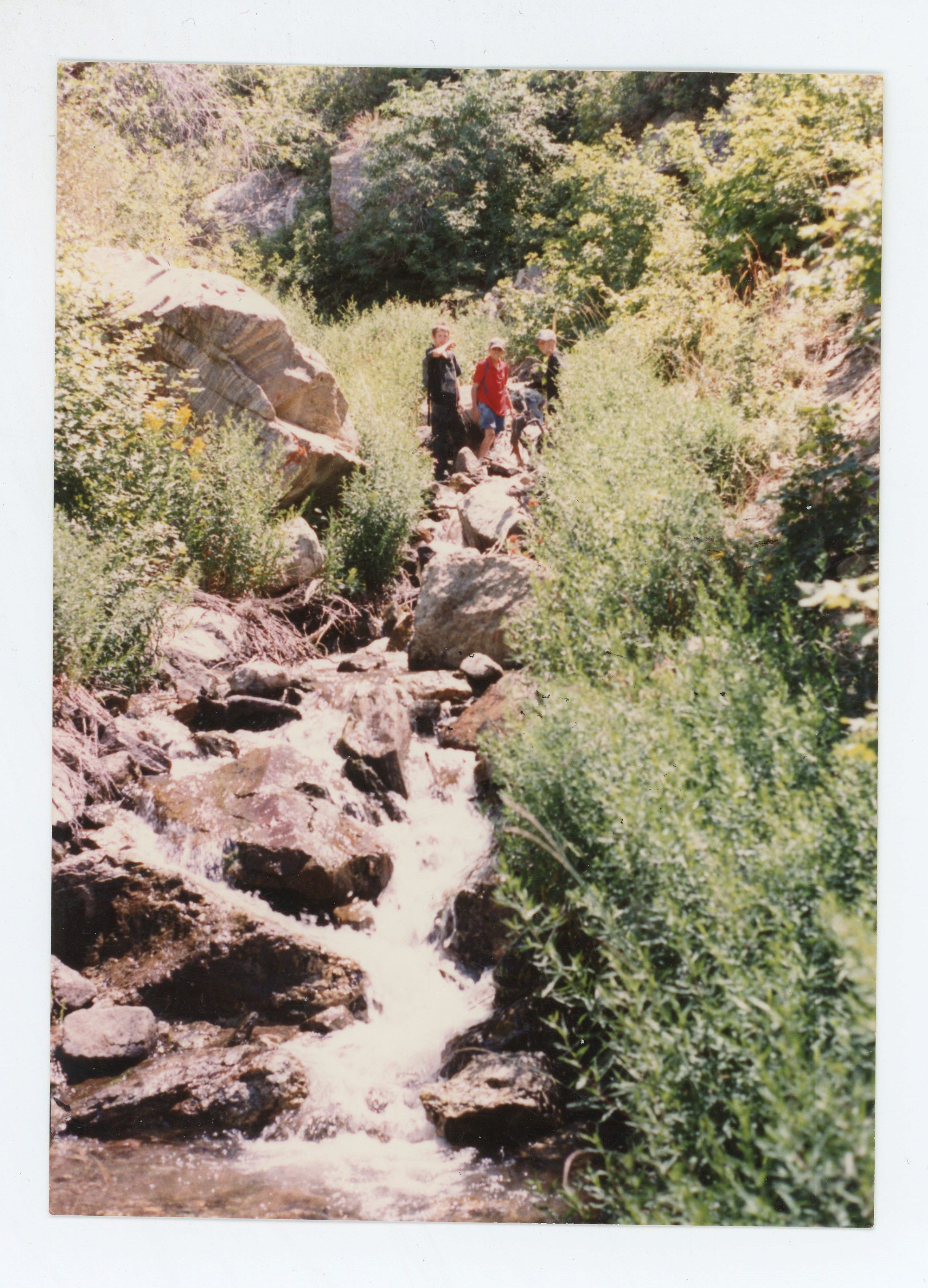 Boy scouts stand in Snow Horse Creek as it flows down the north fork of Webb Canyon.