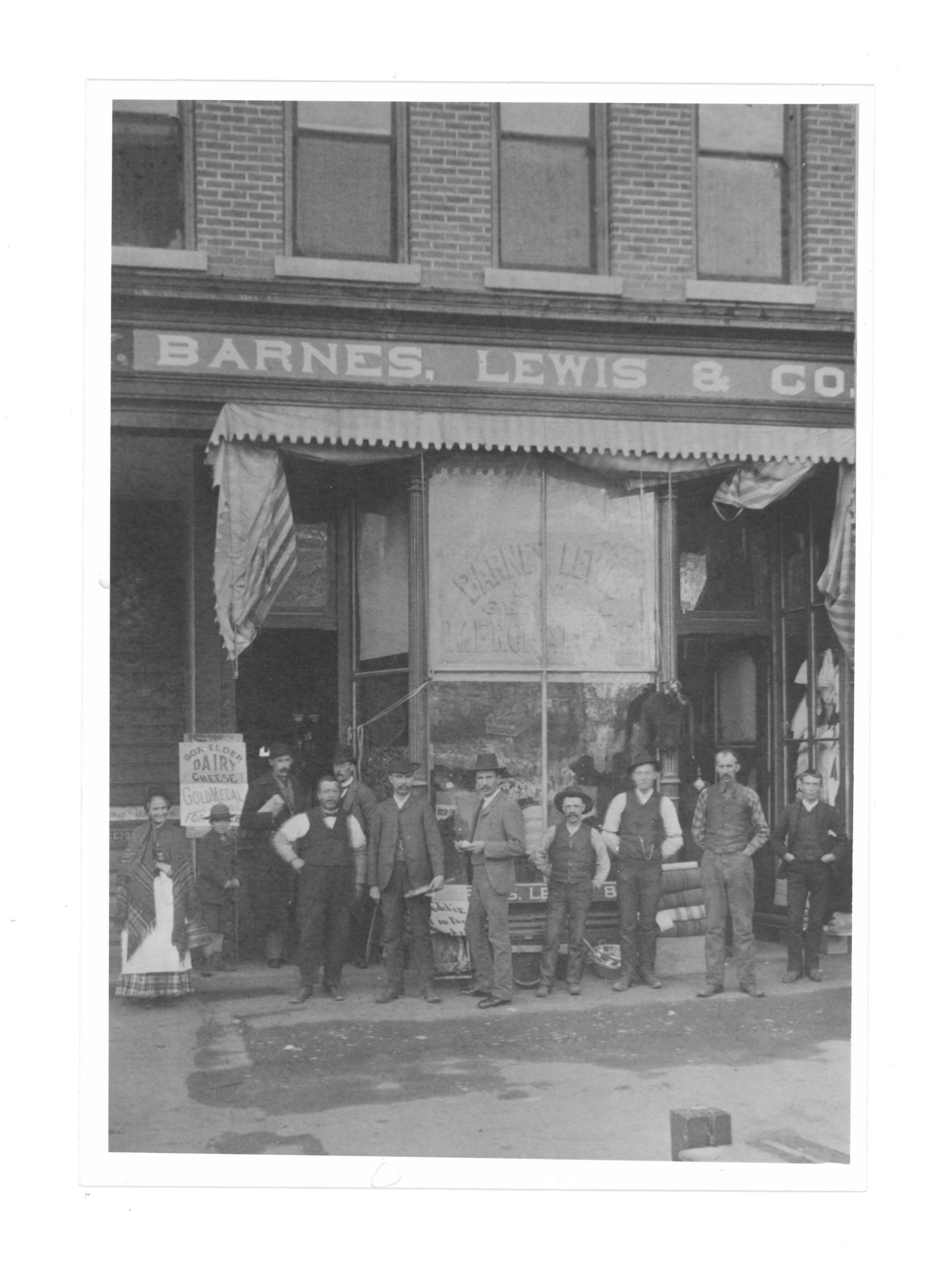 Kaysville townspeople standing outside of the Barnes, Lewis & Co. building.Photograph Details