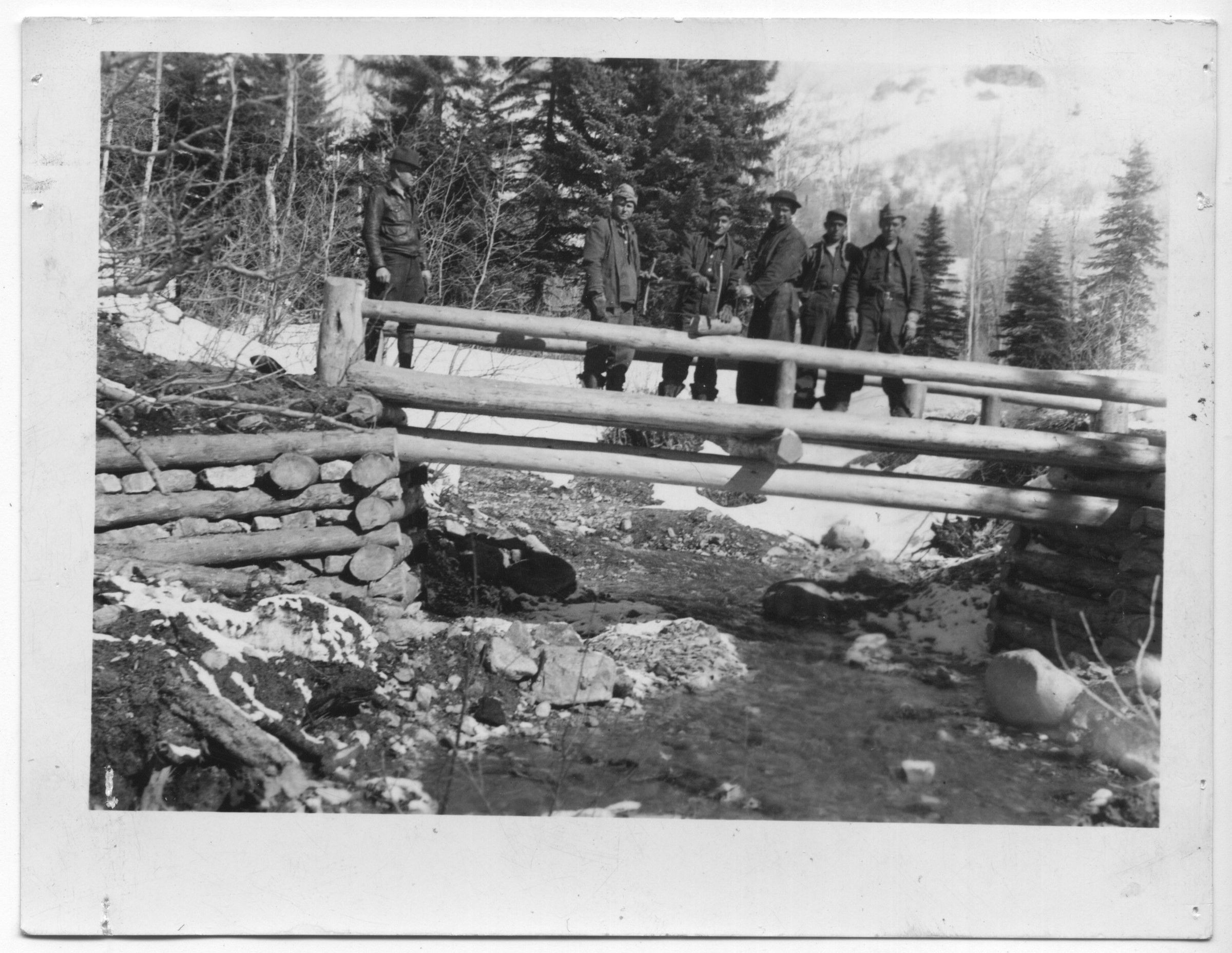 Utah Civilian Conservation Corps workers poste on newly completed bridge.Photograph Details