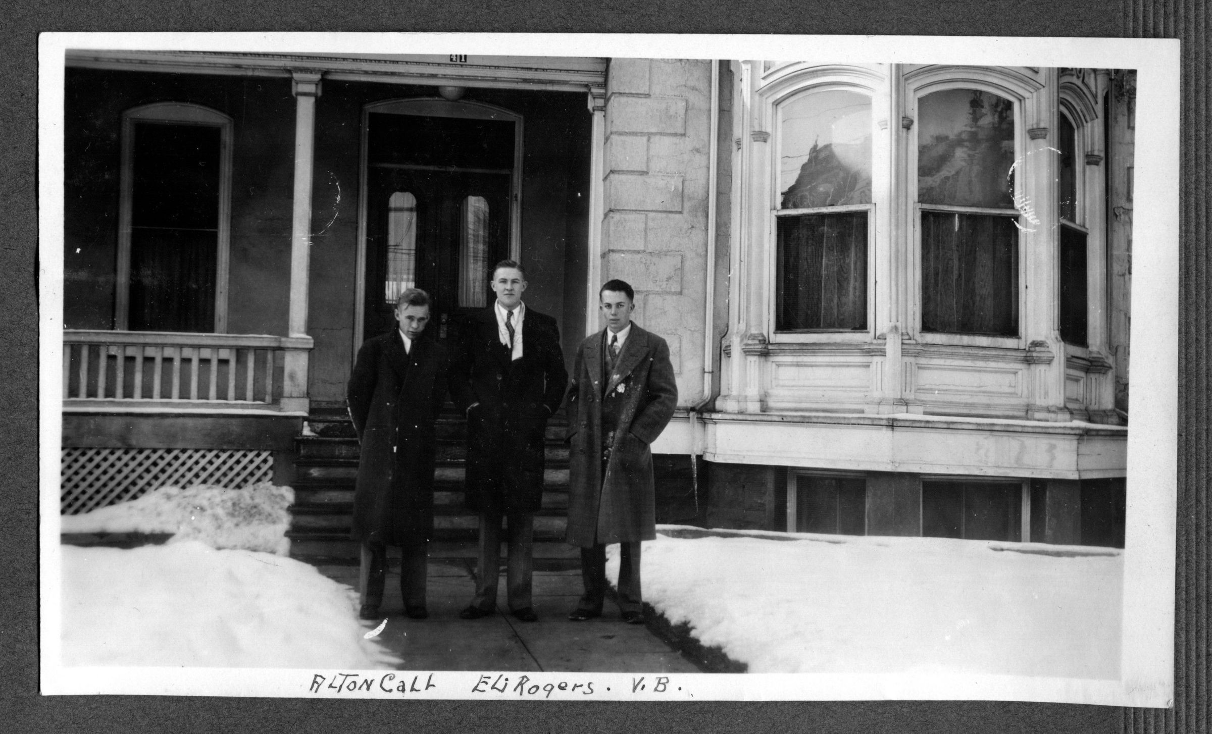 Alton Call, Eli Rogers and Vern Butcher standing outside William Butcher home.Photograph Details