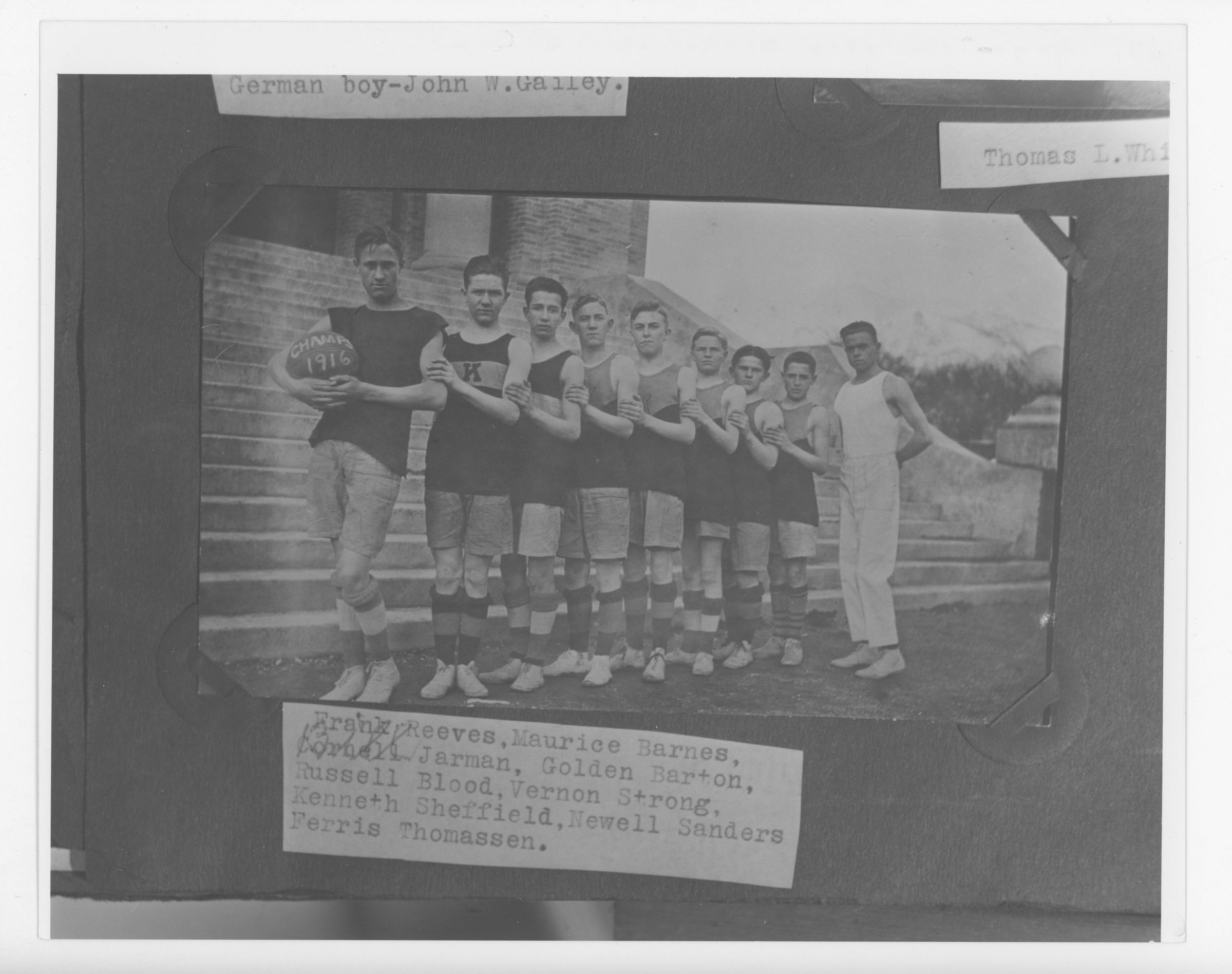 German boy-John W. Galley. Thomas L. Whi Frank Reeves, Maurice Barnes, Cornell Jarman, Golden Barton, Russell Blood, Vernon Strong, Kenneth Sheffield, Newell Sanders Ferris Thomassen.