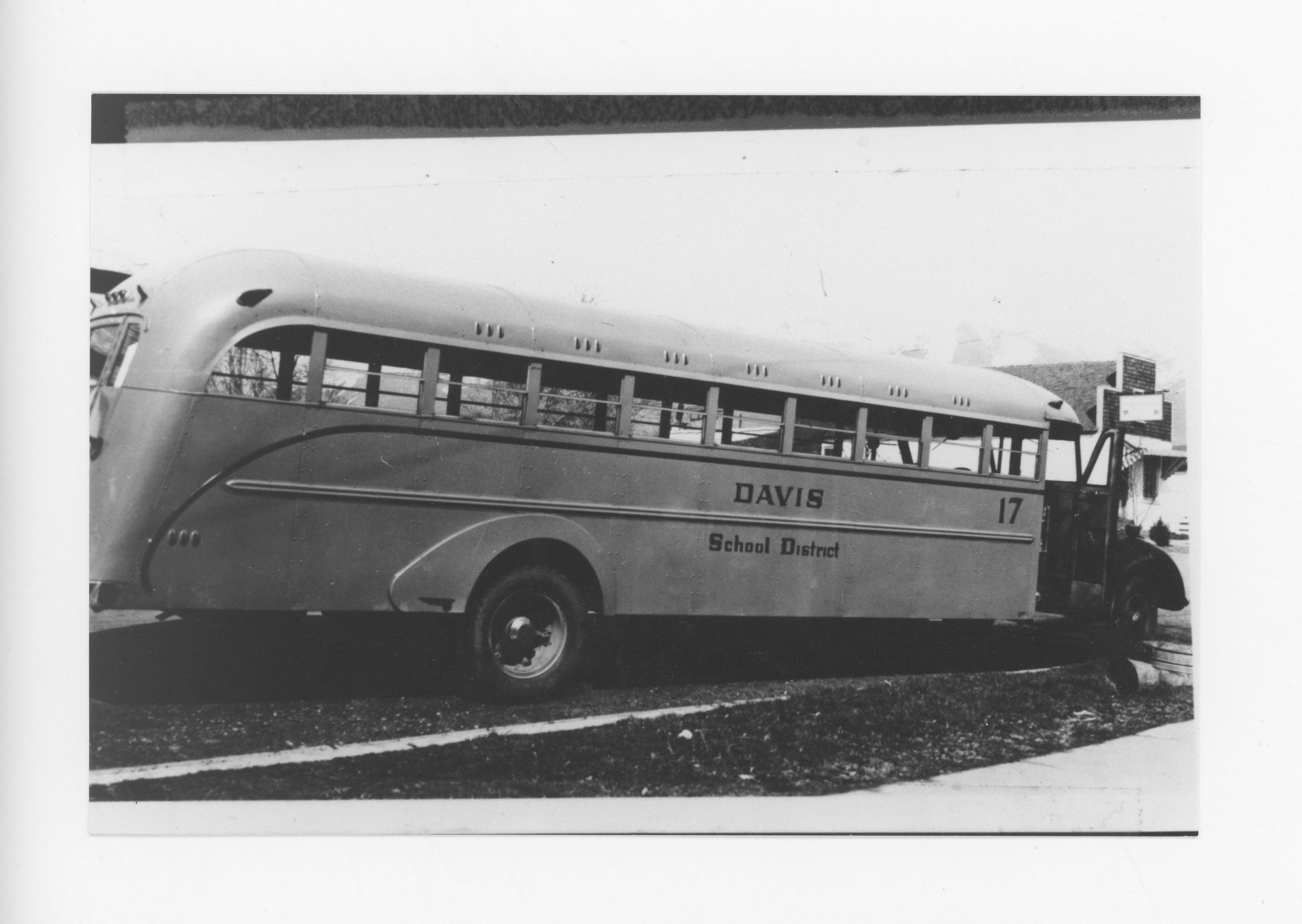 School bus parked on the south side of 100 North Street just east of Main Street.Context