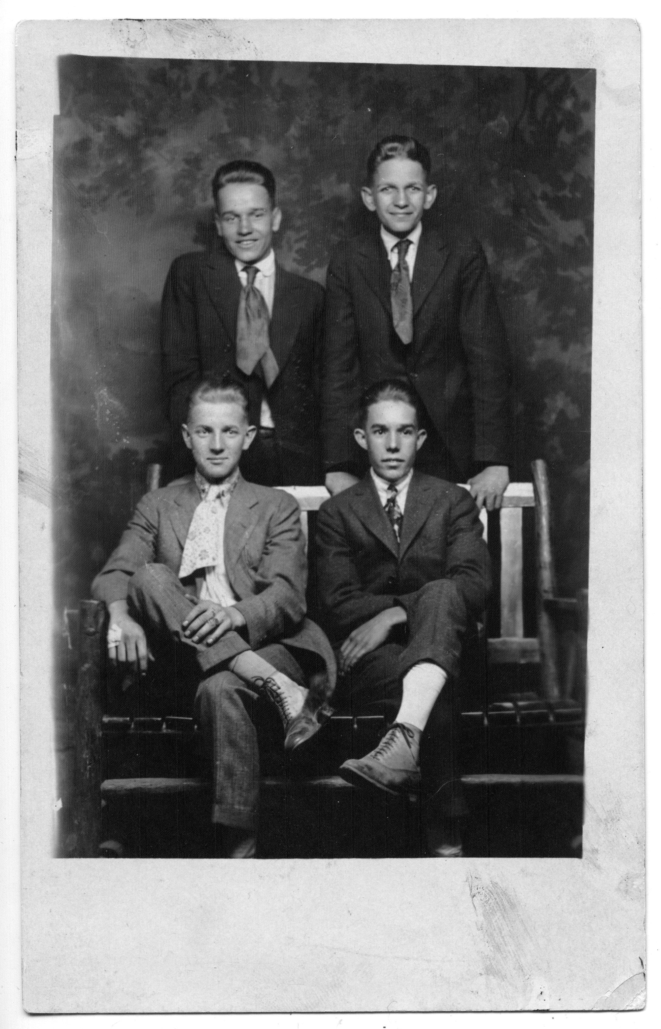 Friends pose together in a studio. George Barker of Kaysville, back row, far left.