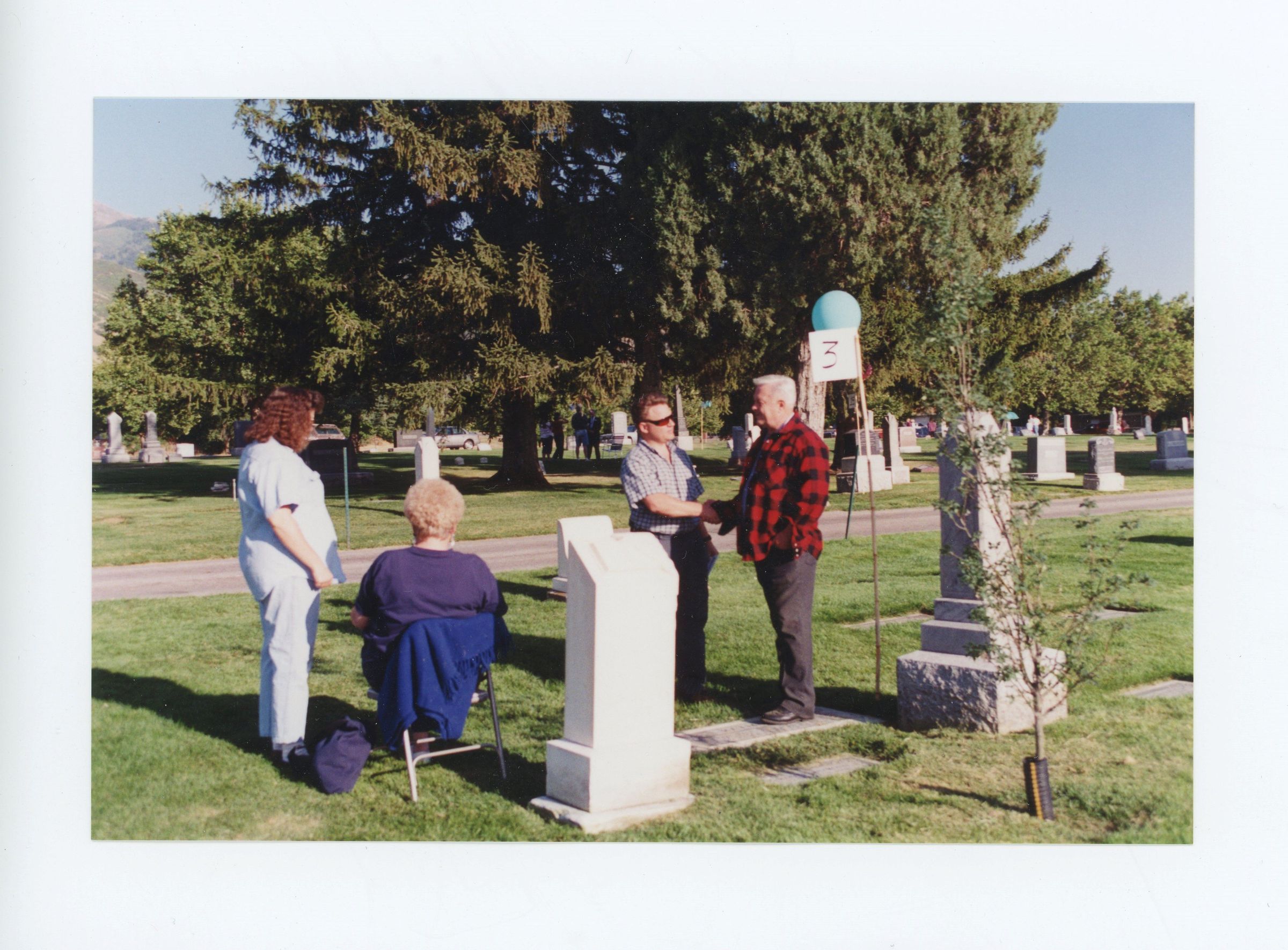 An event which was part of the Kaysville - Fruit Heights celebration of the Utah Centennial took place in 1996. The tour, hosted by the Kaysville - Fruit Heights Historic Committee, invited the public to visit historically significant gravesites in the city cemetery.Photograph Details