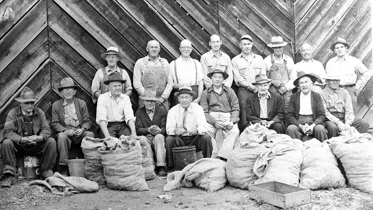 Front row: L to R: Clifford Strong, William Stewart, George C. Ensign, Bruce R. Major, George Green, Joseph Jarman, Warren D. Barnes. Back row (L-R) Alma Stewart, Walter Stewart, Charles Prigmore, Wilford Webster, Ernest Blood, Clifford Green, Bernard Kennah, Hyrum Sandall, Earl Waite, Lee Sanders.Collection