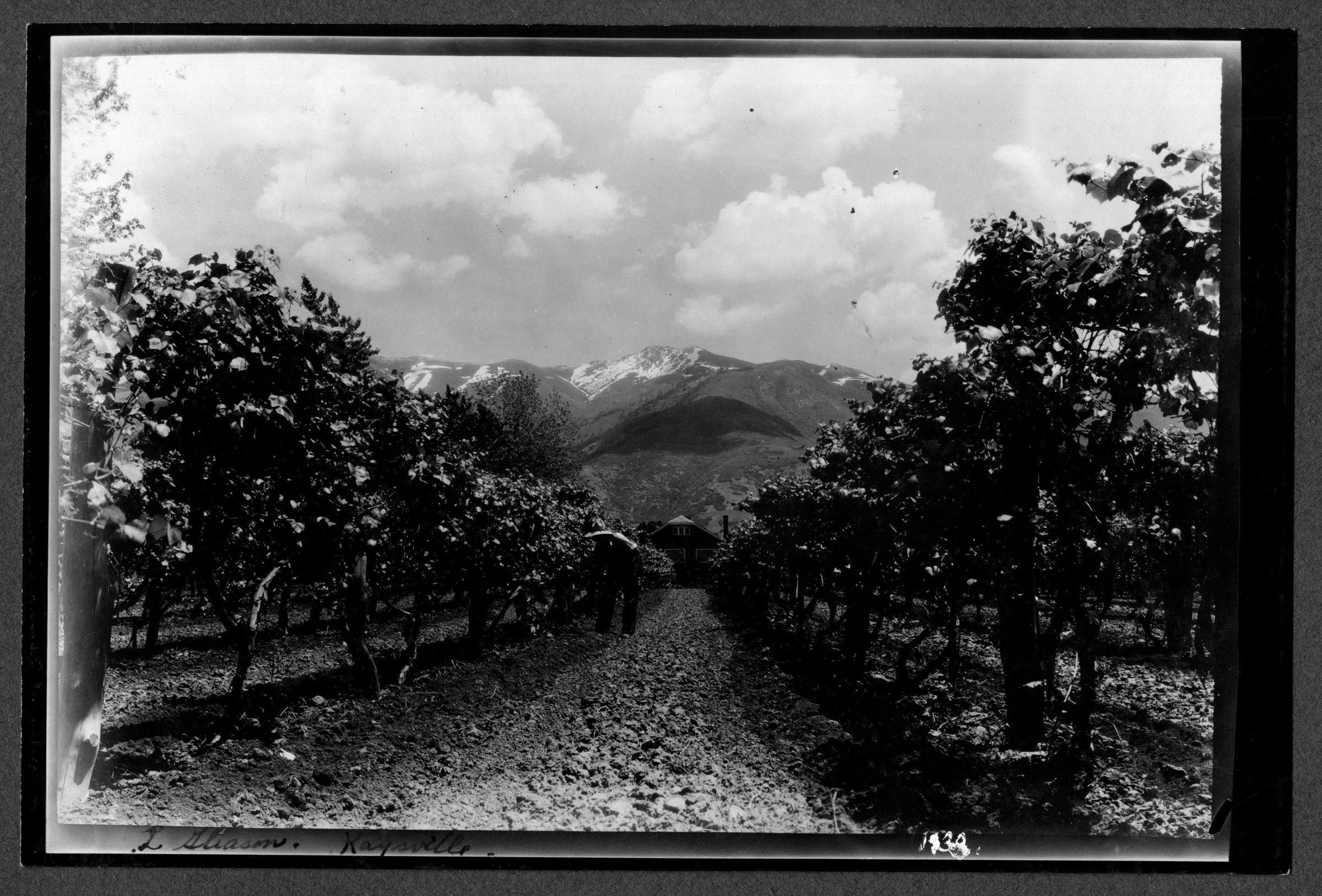 Lester Gleason examines grapevines on his farm in Kaysville.Photograph Details