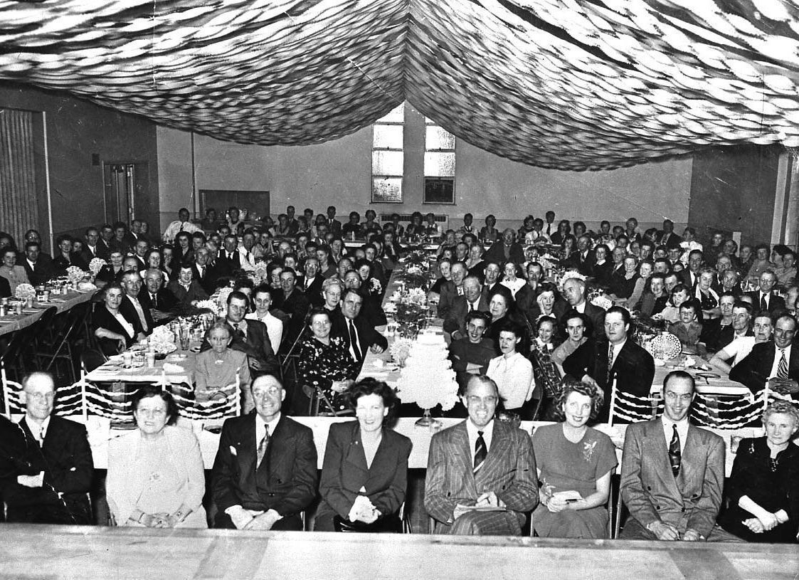 142 Kaysville 2nd ward birthday party in Rock Chapel cultural hall Feb 1949Dimensions