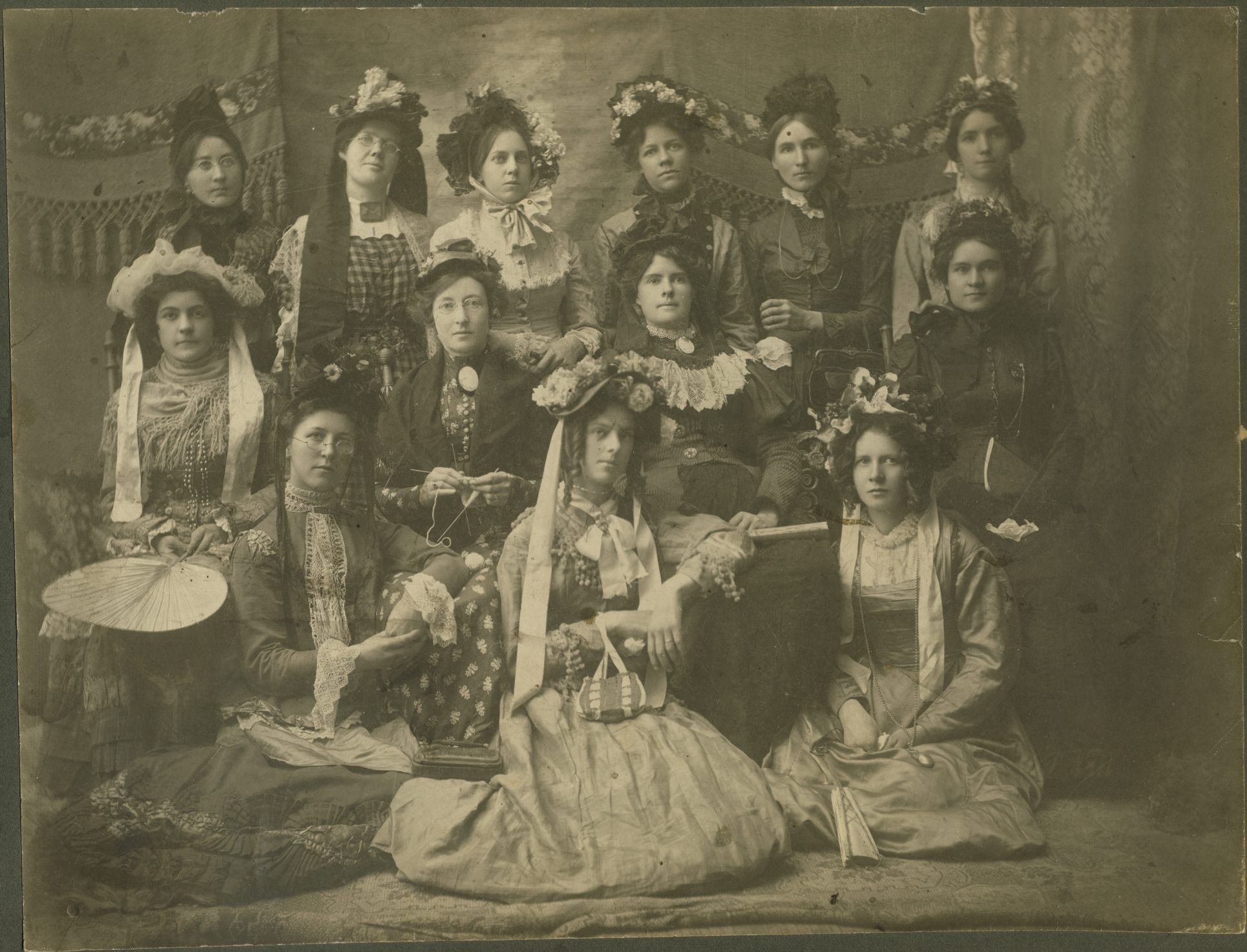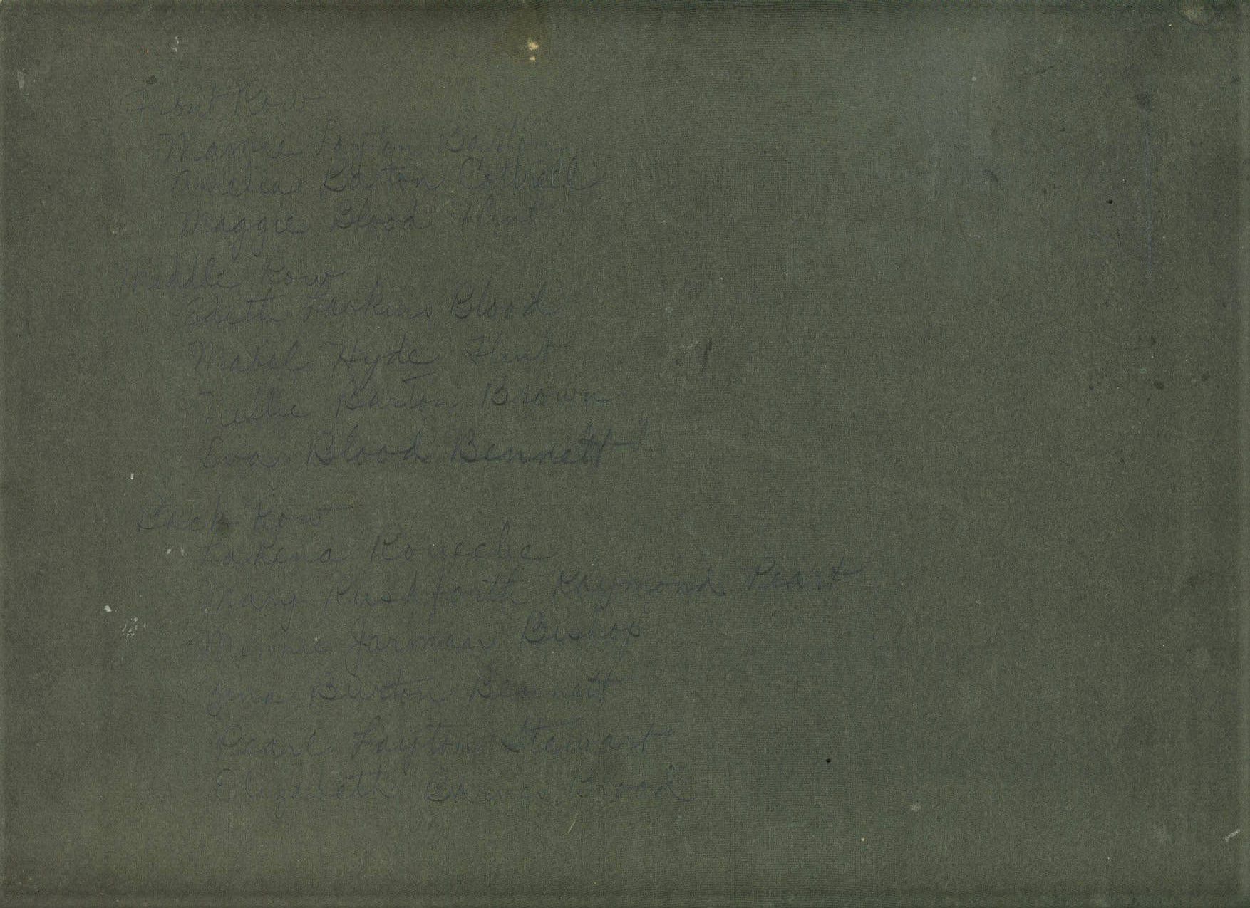 Front row: Mamie Layton Barton, Amelia Barton Cottrell, Maggie Blood Flint. Middle row: Edith Perkins Blood, Mabel Hyde Flint, Nellie Barton Brown, Eva Blood Bennett. Back row: LaRena Roueche, Mary Rushforth Raymond Pearl, Minnie Jarman Bishop, Zena Burton Bennett, Pearl Layton Stewart, Elizabeth Barnes Blood.Photograph Details