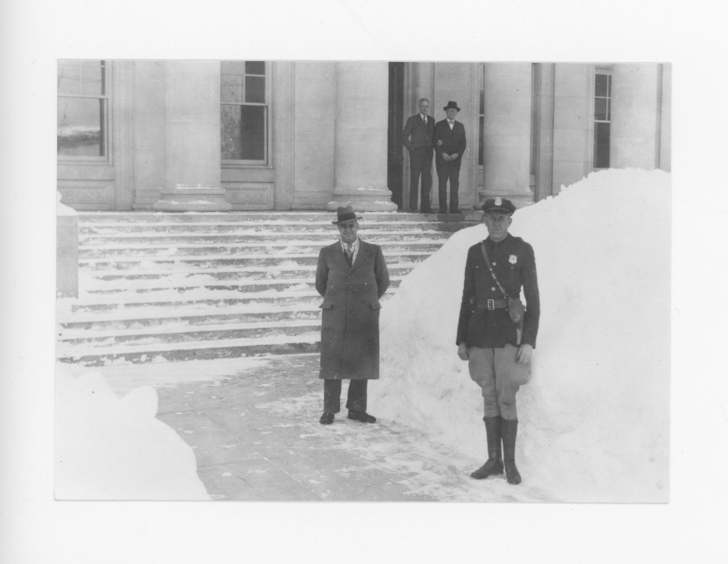 Joe Holbrook Sheriff and unidentified man taken in front of the Davis County courthouse in Farmington, Utah.Context