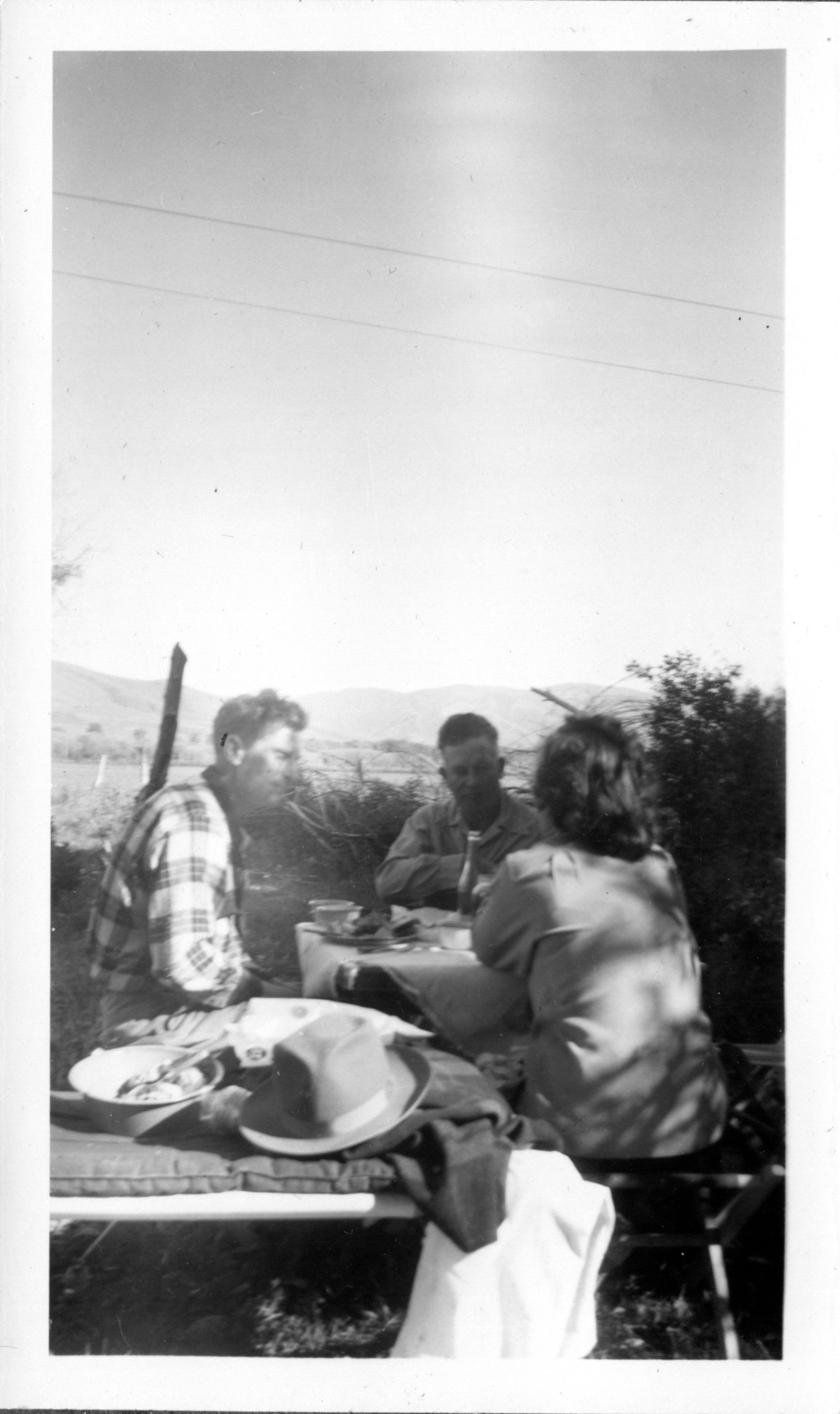 Butcher family members (Carl, center) seated at campsite.Photograph Details