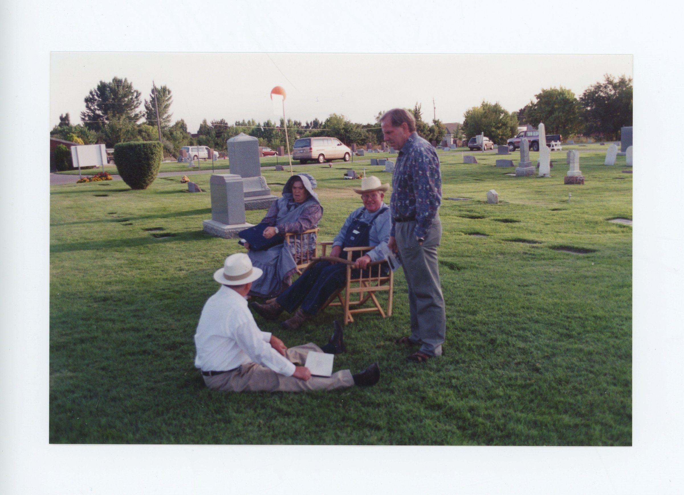 An event which was part of the Kaysville - Fruit Heights celebration of the Utah Centennial took place in 1976. The tour, hosted by the Kaysville - Fruit Heights Historic Committee, invited the public to visit historically significant gravesites in the city cemetery.Photograph Details