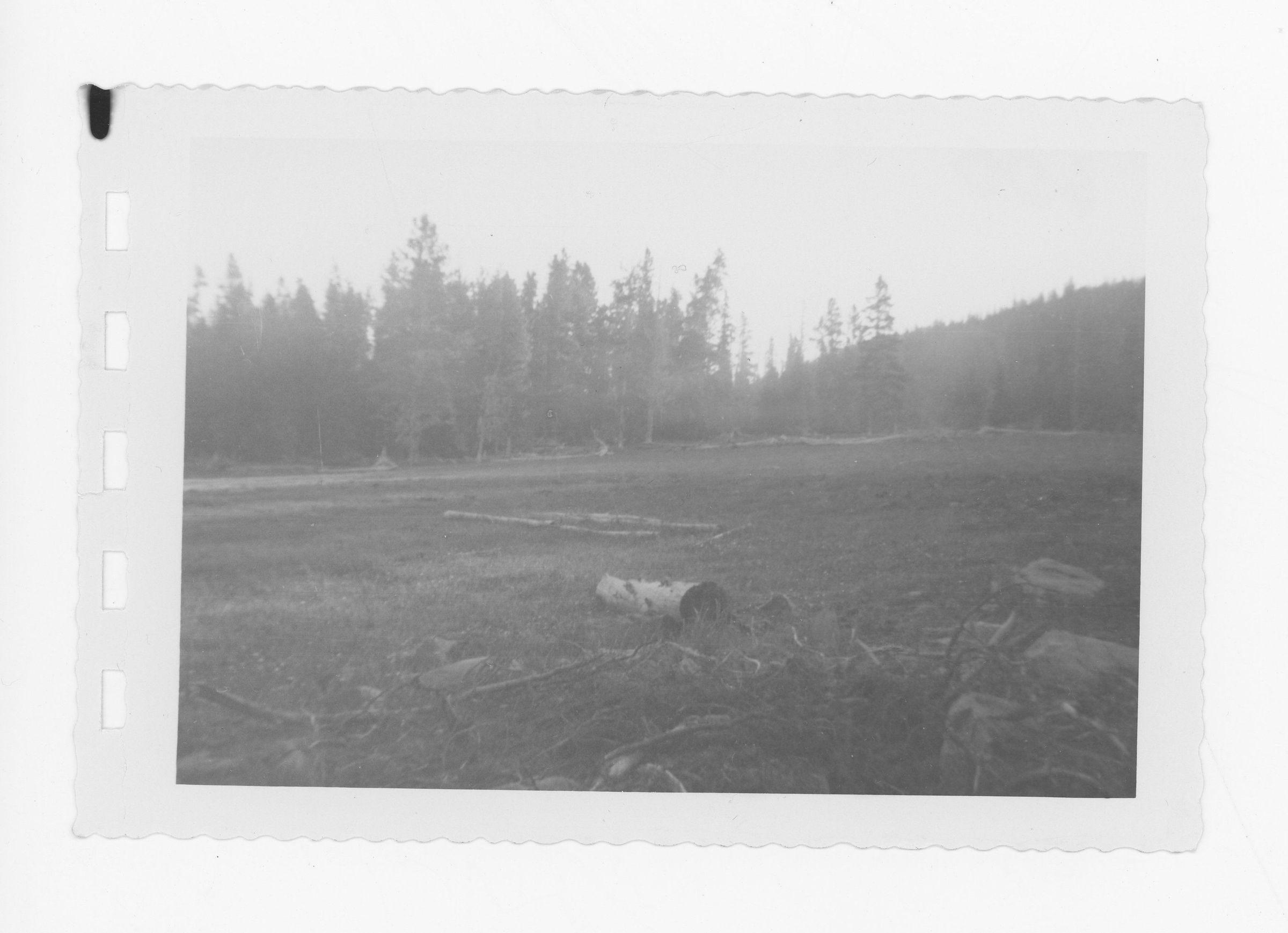 Open Uinta Mountain field rimmed with evergreen trees named Foolhen Parks. Shown is one location of CCC projects.Photograph Details