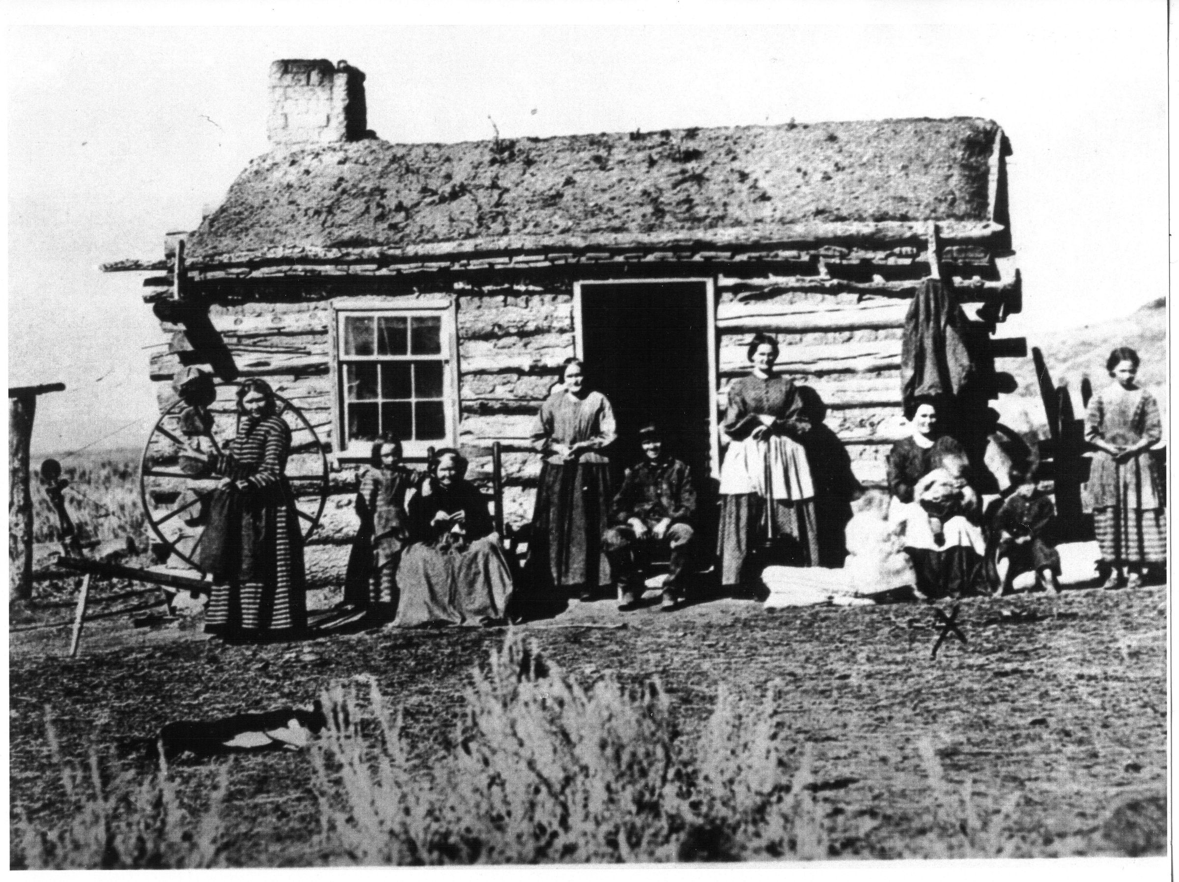 Samuel Ashton, his wife, mother-in-law and sisters-in-law outside cabin on old mountain trail east of Kay's Ward.Photograph Details