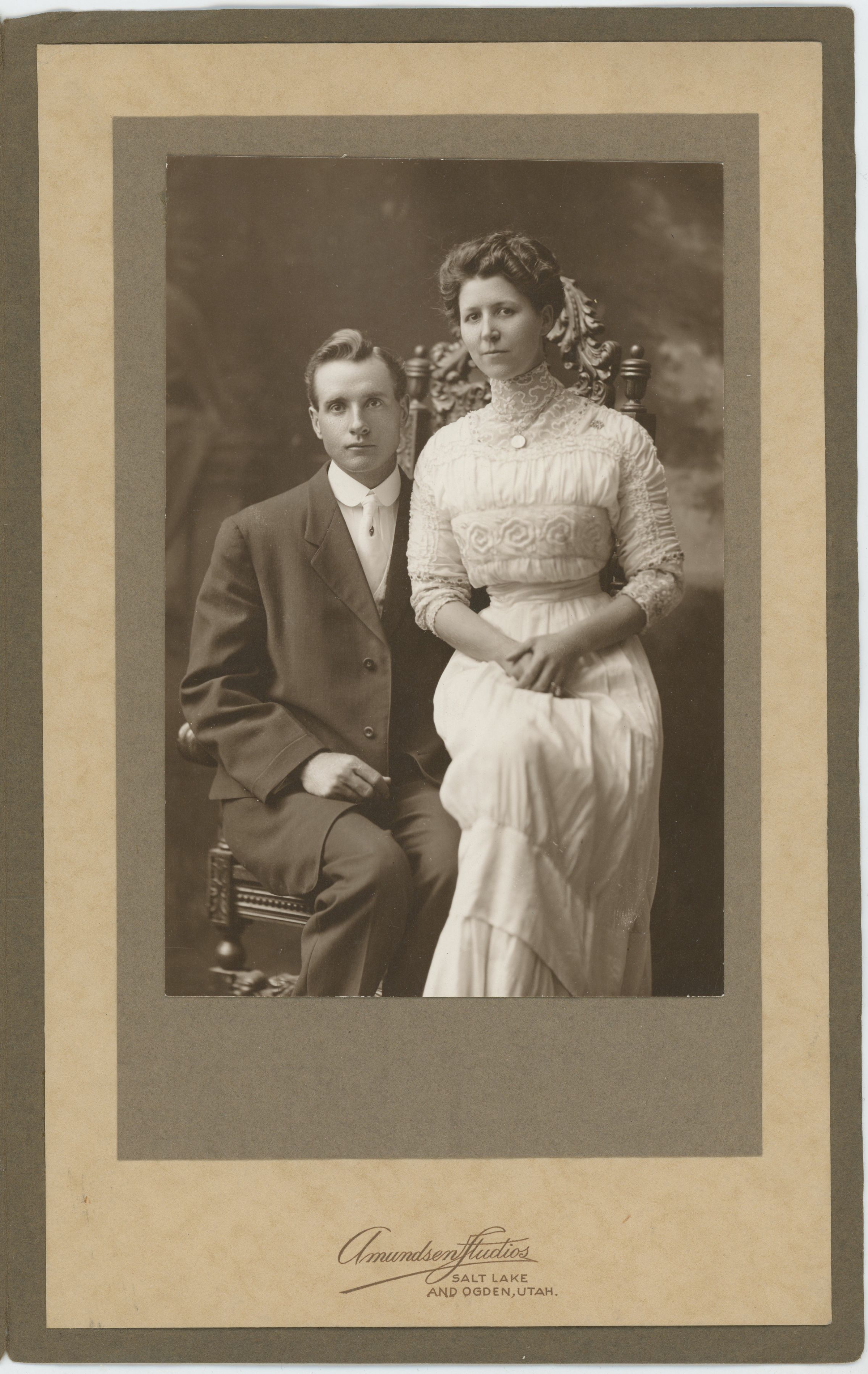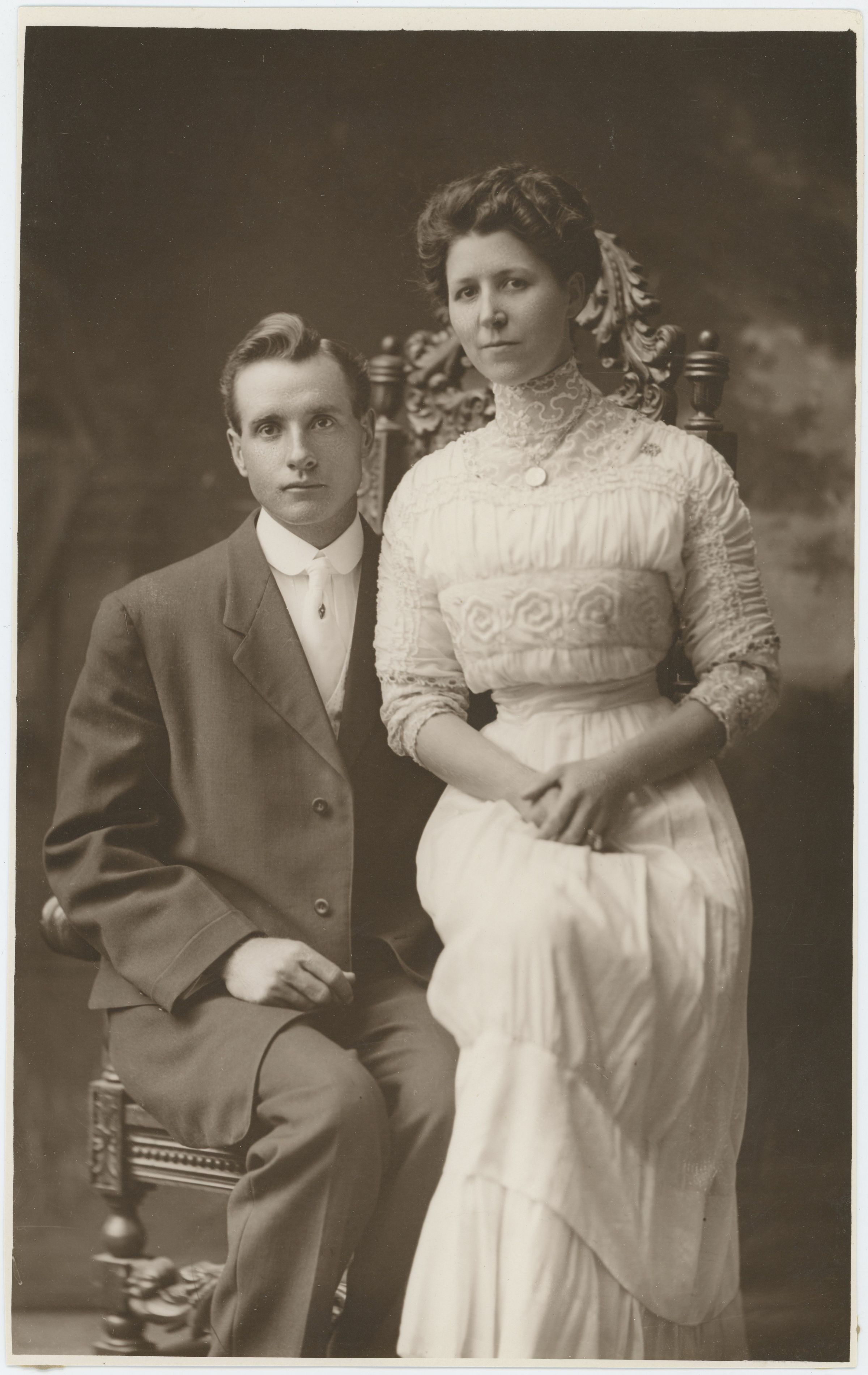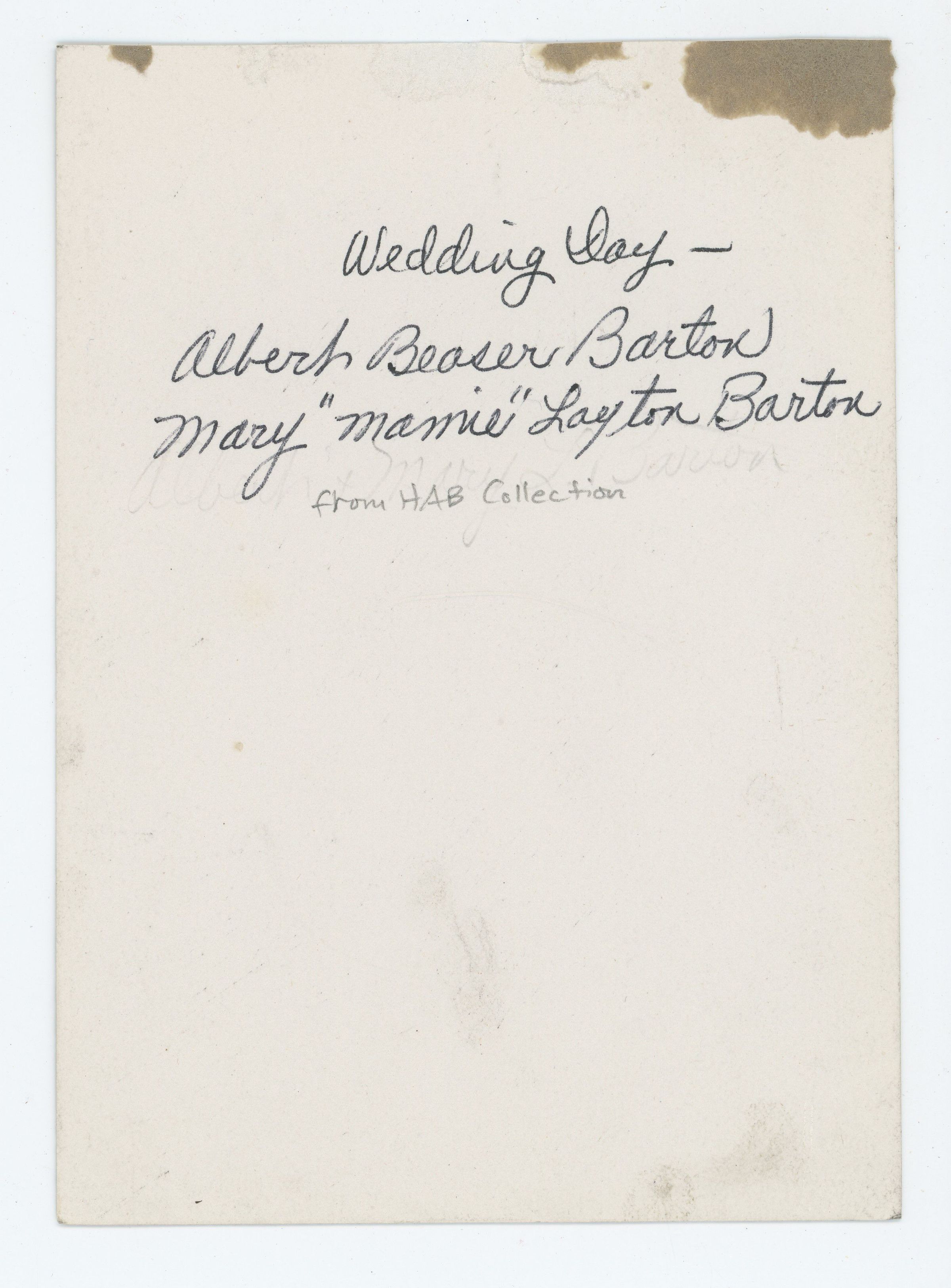 Albert Beazer Barton and Mary "Mamie" Layton in a studio photograph taken at the time of their wedding.Photograph Details