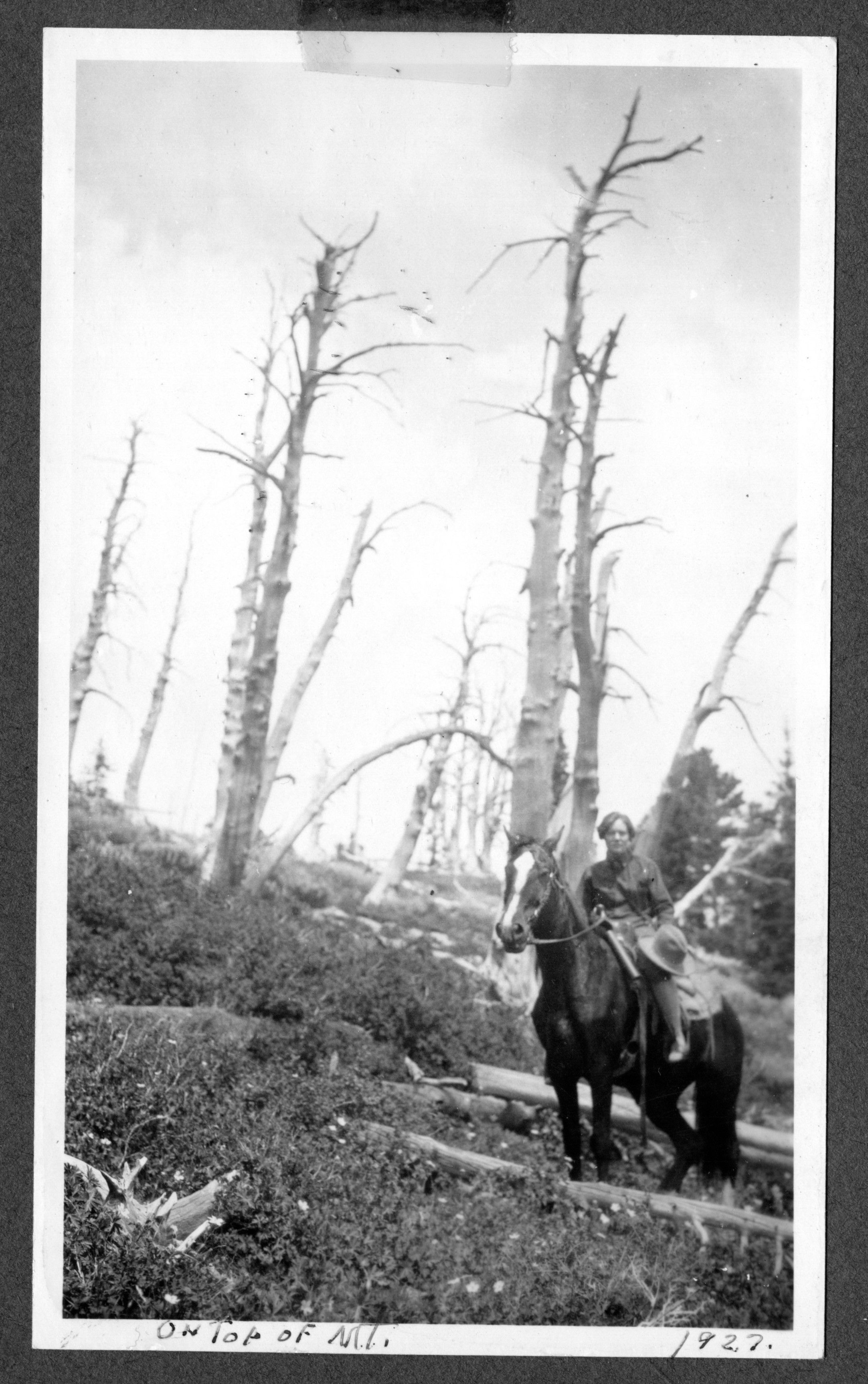 Person riding horse in atop mountain east of Kaysville.Photograph Details