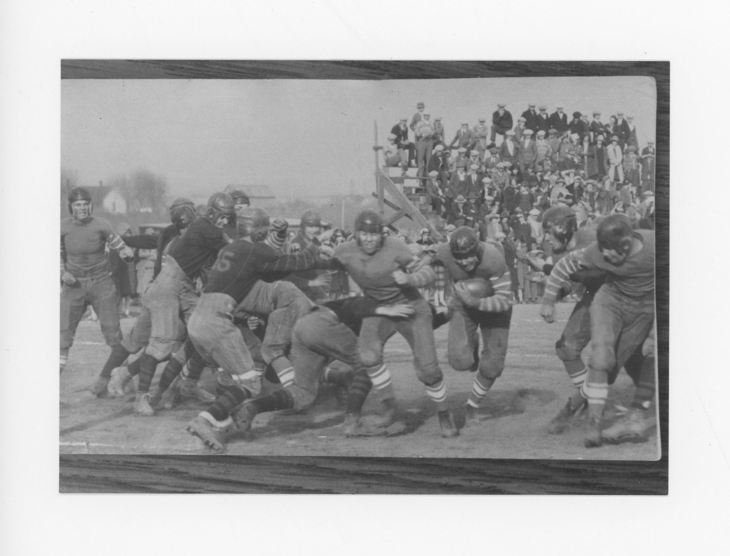 Davis High School football game with the crowd standing in the bleachers in the background.Photograph Details