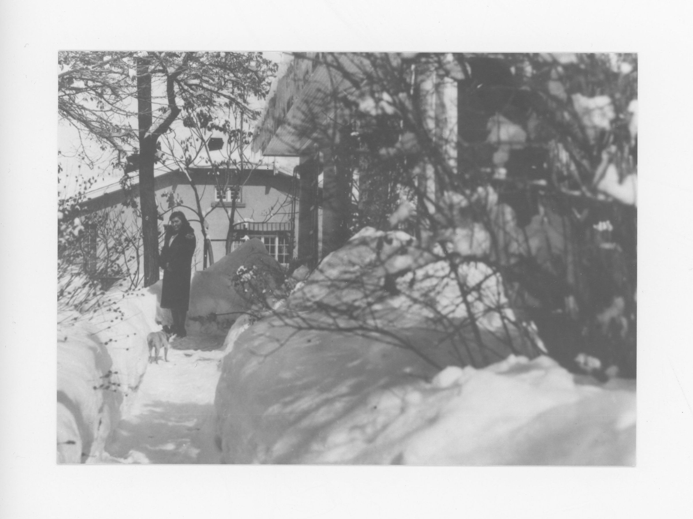 Woman and dog standing in the snow in front of the William P. Epperson home.Photograph Details